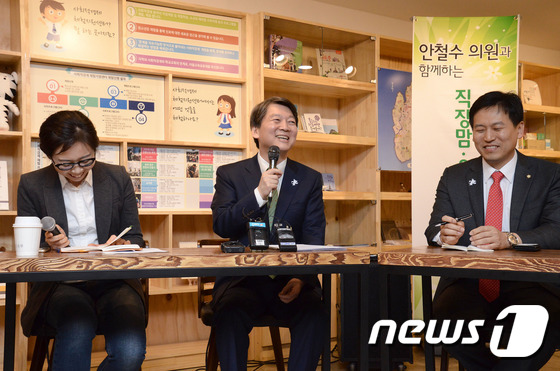| 안철수 전 국민의당 대표가 6일 오후 강원 원주시 쿱드림 카페에서 '안철수 의원과 함께하는 직장맘·육아맘과의 대화'를 진행하고 있다. 2017.3.6/뉴스1 © News1 고재교 기자 |