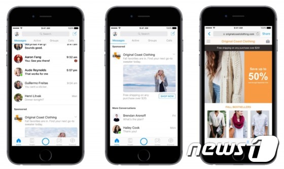 | 페이스북 메신저 광고 시연 사진. (페이스북 메신저 소식란 갈무리) © News1 |