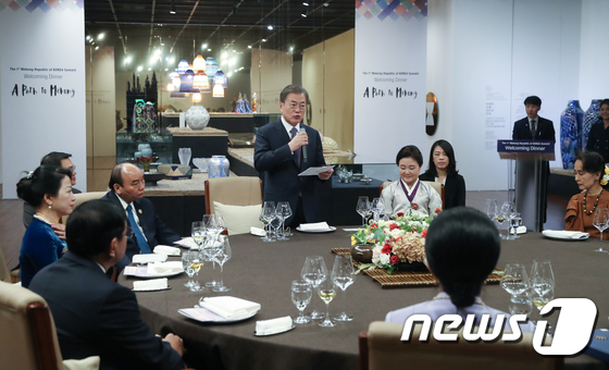| 문재인 대통령이 11월26일 오후 부산 아세안문화원에서 열린 제1차 한-메콩 정상회의 환영 만찬에서 만찬사를 하고 있다.(2019 한-아세안 특별정상회의 제공) 2019.11.26/뉴스1 |