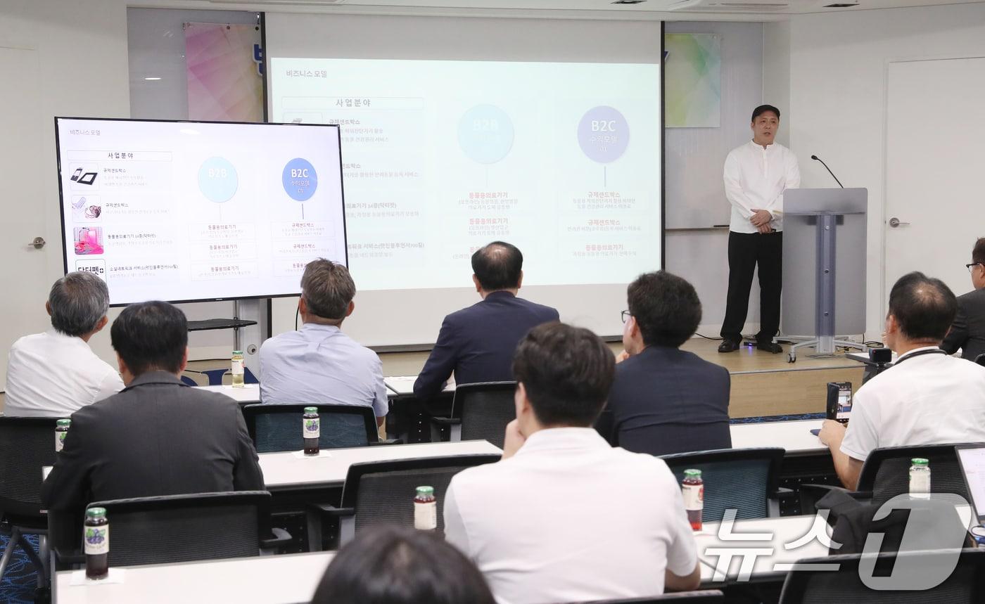 임경호 프레쉬아워 대표가 20일 오후 경기 성남시 분당구 글로벌디지털혁신네트워크(GDIN)에서 열린 '반려동물 산업 육성 협의회' 제6회 IR(기업설명회)데이에서 기업 발표를 하고 있다. 2024.9.20/뉴스1 ⓒ News1 김영운 기자김재봉 더마글루 대표가 20일 오후 경기 성남시 분당구 글로벌디지털혁신네트워크(GDIN)에서 열린 '반려동물 산업 육성 협의회' 제6회 IR(기업설명회)데이에서 성과 공유를 하고 있다. 2024.9.20/뉴스1 ⓒ News1 김영운 기자관련 키워드반려동물ir반려동물ir데이반려동물산업육성협의회최서윤 동물문화전문기자 연구 기반 자연식 브랜드 '레이앤이본'…7주년 맞이 감사 이벤트"반려동물 사료는 과학"…우리와, 국내 최대 펫푸드 연구소 개소한송아 기자 펫푸드에서 라이프스타일로…네츄럴코어, '하이메이' 장난감 출시월드펫동물메디컬센터, 현장실습·취업 연계 성과로 연성대 감사패관련 기사반려동물 당뇨·비만 신약 도전…알엑스바이오, 보증·투자 동시 확보"사우디 전량 수입 희망"…펫라이즈 'K-배변봉투' 글로벌 관심 집중"가능성 무궁무진"…반려동물 IR 데이, 스타트업 발굴 성과 조명반려견 골관절염 공략…라제온, 근적외선 기반 통증 완화 기술 소개"AI가 반려견 숨·심박 읽는다"…케어식스, 생체신호 웨어러블 공개