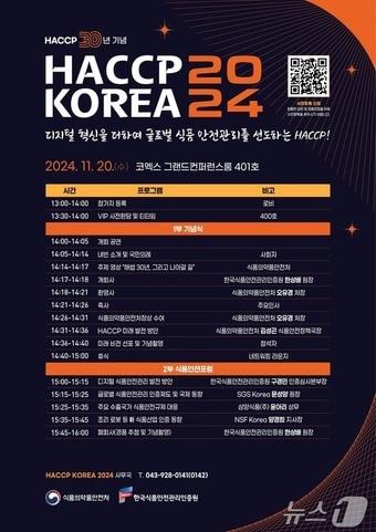 "국내 생산 식품 90% HACCP 관리"…미래 비전 'S·U·R·E' 제시HACCP KOREA 2024 포스터/식약처 제공김규빈 기자 “발 시리고 어지러우면 즉시 이동"…연말 타종 행사, 이럴 땐 피해야의료기관 AI 관리체계 국제표준 적용 사례 나왔다…국립암센터 인증
