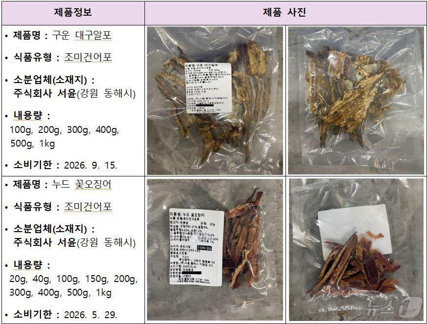 식약처, 소비기한 연장 표시한 '조미건어포' 회수