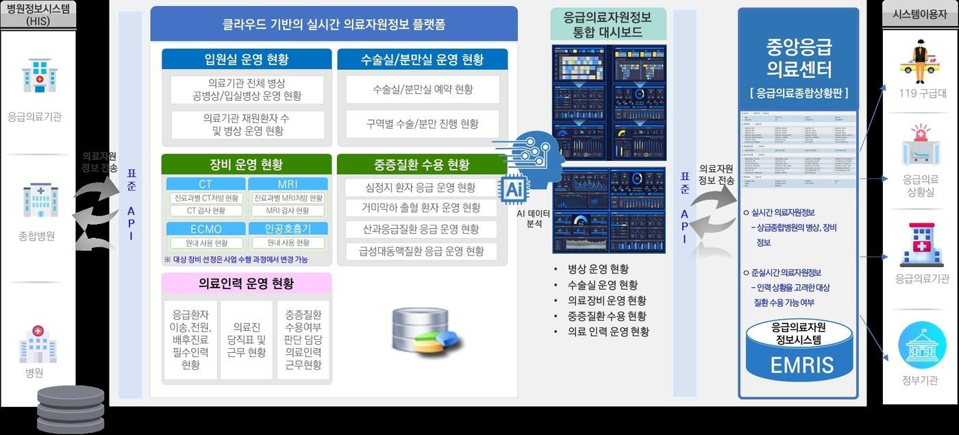고대의료원, '실시간 의료자원 정보 플랫폼 구축' 사업병상·장비·질병수용 등 1분 단위 수집…적기에 의료시설 연계실시간 의료자원정보 플랫폼 시스템 모식도.(고려대의료원 제공)구교운 기자 건보 이사장 "국민, 폐암으로 죽는데 담배회사 떵떵…비참하다"'엄지손가락'만한 심장에 복잡 기형…생후 8일만에 치료 성공