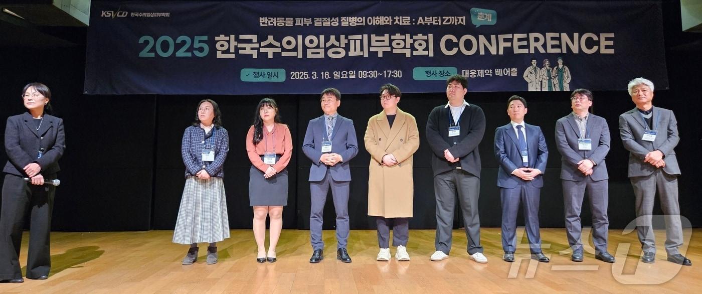 강종일 한국수의임상피부학회 회장이 16일 열린 춘계 컨퍼런스에서 환영사를 전하고 있다. (한국수의임상피부학회 제공) ⓒ 뉴스1한태호 대한수의사회 수석 부회장(왼쪽)이 강민희 장안대학교 교수에게 감사패를 수여하고 기념 사진을 찍고 있다. ⓒ 뉴스1 한송아 기자16일 서울 강남구 대웅제약 베어홀에서 개최된 2025 한국수의임상피부학회에서 김용백 서울대학교 교수가 특강을 하고 있다. ⓒ 뉴스1 한송아 기자16일 열린 2025 한국수의임상피부학회 춘계 컨퍼런스에서 유한양행이 부스를 마련하고 제품을 소개하고 있다. ⓒ 뉴스1 한송아 기자신교무역이 16일 2025 한국수의임상피부학회 춘계 컨퍼런스에 참가해 후코이단 영양제 후코아이 블루를 소개하고 있다. ⓒ 뉴스1 한송아 기자한국반려동물영양연구소는 16일 2025 한국수의임상피부학회 춘계 컨퍼런스에서 닥터레이 오메가3 영양제 등을 소개했다. ⓒ 뉴스1 한송아 기자2025 한국수의임상피부학회 춘계 컨퍼런스에서 우수 발표자로 뽑힌 수상자들이 기념 사진을 찍고 있다. ⓒ 뉴스1 한송아 기자2025 한국수의임상피부학회 춘계 컨퍼런스에서 협찬 업체에 대한 감사장 수여 후 기념 사진을 찍고 있다. ⓒ 뉴스1 한송아 기자한국수의임상피부학회 임원들이 16일 기념 사진을 찍고 있다. ⓒ 뉴스1관련 키워드펫헬스케어수의사수의학강아지피부병고양이피부병반려동물한송아 기자 산책 중 다리 들고 걷던 강아지, 고관절 보존 수술 받고 회복"사람·동물 행복한 사회"…농림축산식품부, 국민적 공감대 만든다최서윤 동물문화전문기자 "사람·동물 행복한 사회"…농림축산식품부, 국민적 공감대 만든다연구 기반 자연식 브랜드 '레이앤이본'…7주년 맞이 감사 이벤트관련 기사로얄캐닌–FASAVA, 아태지역 수의학 역량 강화 위한 파트너십 체결수의학 교육 질 높인다…대한수의사회-한국교총, 업무협약 체결수술 실습·글로벌 기준까지…수의골관절학회 교육 행보 '주목'메타디엑스, 런던벳쇼 혁신 기업 10곳 선정…AI 종양검사 기술 주목벳어스, 힐스 처방식 공식 입점…"수의사 처방 기반 유통 혁신"