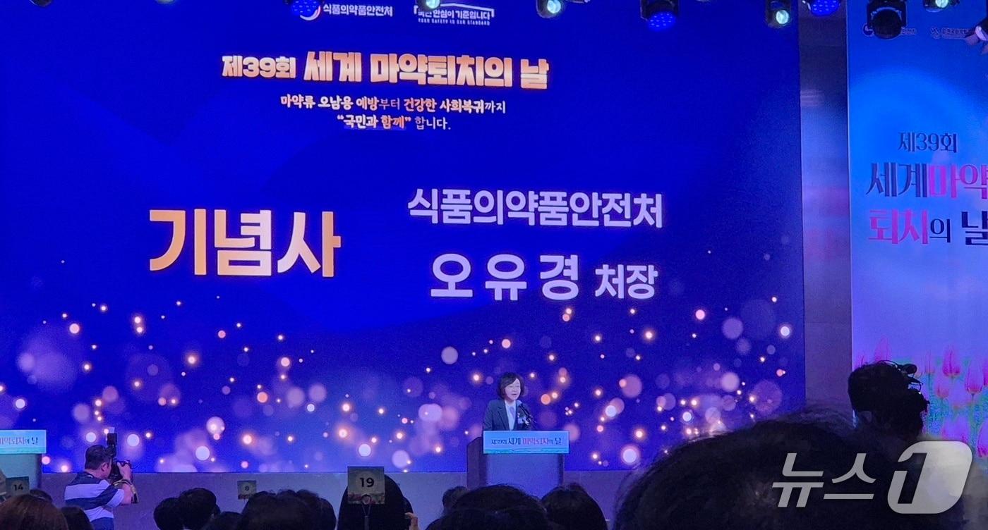 오유경 식품의약품안전처장은 26일 코엑스 마곡 컨벤션센터에서 열린 '제39회 세계마약퇴치의 날 기념식'에서 "이러한 상황에서 마약에 대한 처벌과 단속 물론 중요하지만 그와 동행해서 예방과 교육, 재활에 관심 가지고 노력하는 것이 필요한 상황"이라며 이같이 밝혔다.
