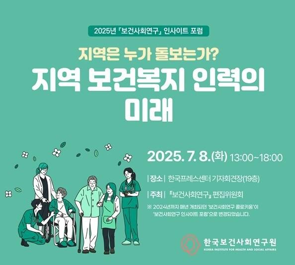 초고령화·인구감소 대응…9년간 학계·정책 현장 잇는 장 마련지역 돌봄 붕괴 경고…"정책 대안 마련 위한 공론장 만들 것"2025 보건사회연구 인사이트 포럼 포스터(보건사회연구원 제공)관련 키워드보건사회연구원보사연인사이트 포럼김규빈 기자 탈모 급여화 논의 재점화…건강보험은 무엇을 질병으로 봐왔나서울시 의료단체 "공단 특사경, 절차적 정당성 우선해야"