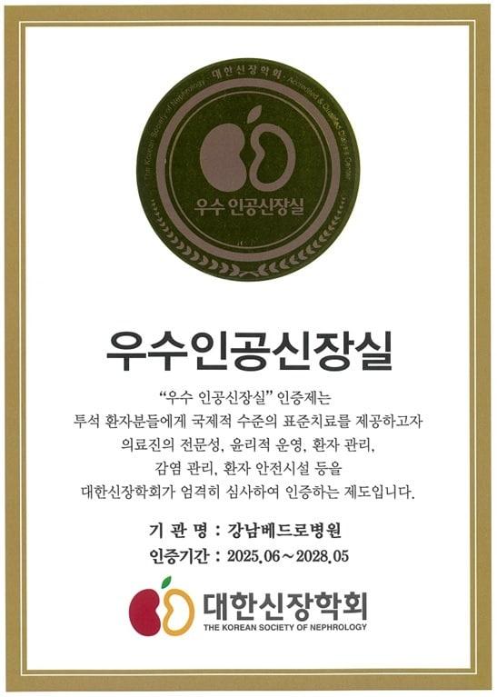 대한신장학회 선정…투석전문의 등 전문 인력 구성 높은 평가(강남베드로병원 제공)관련 키워드강남베드로병원구교운 기자 겨울철 난방에 눈 뻑뻑하다면…"안구건조증 이렇게 막으세요"정은경 "탈모·비만 건보 적용 검토…재정 영향 따져 결정"(종합)관련 기사강남베드로병원-국립중앙의료원, 응급·외상 환자 대응 협력 고도화강남베드로병원, 박관태 전 고대의대 교수 영입…외과 신설낮은 실내온도·식사결핍·고립…1인 가구, 한파에 '더' 취약한 이유"아이들의 밤이 짧아진다"…어린이집까지 번진 '수면부족'여름철 액티비티 즐긴 후 손상 주의…단순 근육통 아닐지도