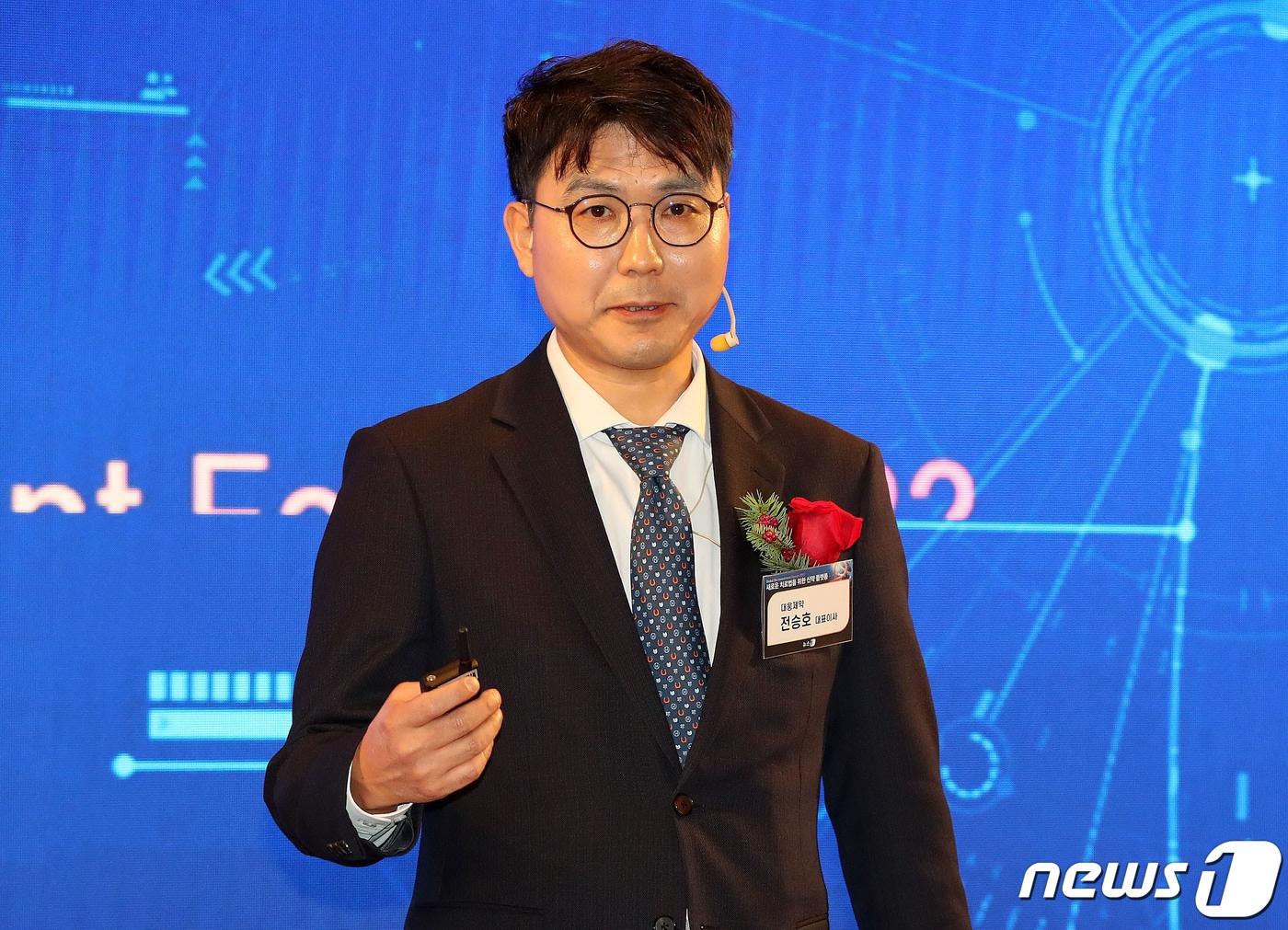 전승호 대웅제약 대표가 23일 서울 소공동 롯데호텔에서 열린 '글로벌바이오투자포럼 2022'(GBIF 2022)에서 '대웅제약 혁신신약 개발 키워드:R&D 플랫폼, 오픈 콜라보'를 주제로 연설을 하고 있다. 올해로 6회를 맞이한 이번 행사는 '새로운 치료법을 위한 신약 플랫폼'을 주제로 민영 종합뉴스통신사 뉴스1과 한국생명공학연구원, 국가생명공학정책연구센터가 공동주최하고 과학기술정보통신부, 식품의약품안전처, 기초과학연구원(IBS) 후원으로 열렸다. 2022.11.23/뉴스1 ⓒ News1 박세연 기자