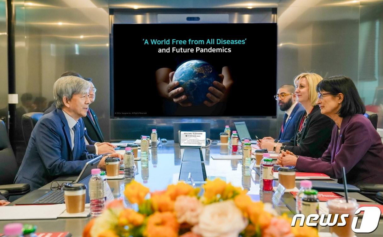제니 해리스(Jenny Harries) 영국 보건안보청장(맨 오른쪽)이 지난달 27일 서울 송파구 씨젠 본사를 방문해 천종윤 씨젠 대표(맨 왼쪽)와 '질병없는 세상'을 구현하기 위한 방안을 논의하고 있다.(씨젠 제공)/뉴스1ⓒ 뉴스1관련 키워드씨젠이훈철 기자 화우, 2년간 매출 35% 상승…1인당 매출 7.6억 1위이상돈 교수 "내란척결 몰두 좋지 않아…사법개혁 위해 2심 강화해야"관련 기사정부 밸류업 정책 화답…중간배당 기업 26%·금액 17% 증가분자진단 검사 자동화 시대…씨젠, 무인 시스템 '큐레카' 시장 선도'엔데믹 극복'…씨젠, 2Q도 흑자…수익 모델 늘려 지속 성장 시도대기업 날고 중견기업은 '휘청'…중견기업 1분기 영업익 2.7% ↓자사주 공시 규제, 사실상 유명무실…中企 절반이 "계획 없다"