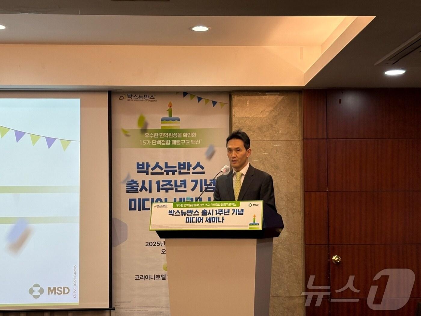 한국MSD '박스뉴반스 출시 1주년 기념 미디어 세미나' 개최박스뉴반스, 기존 13가 백신과의 교차접종 임상 데이터도 갖춰조재용 한국MSD 백신사업부 전무가 1일 오후 서울 중구 코리아나호텔에서 열린 '박스뉴반스 출시 1주년 기념 미디어 세미나'에서 강연하고 있다.관련 키워드한국MSD머크폐렴구균침습성 폐렴구균 질환PCV13김정은 기자 일동제약 '창업주 3세' 윤웅섭 부회장, 회장 승진…경영 전면으로한미사이언스, '완전두유 더진한 렌틸콩' 출시