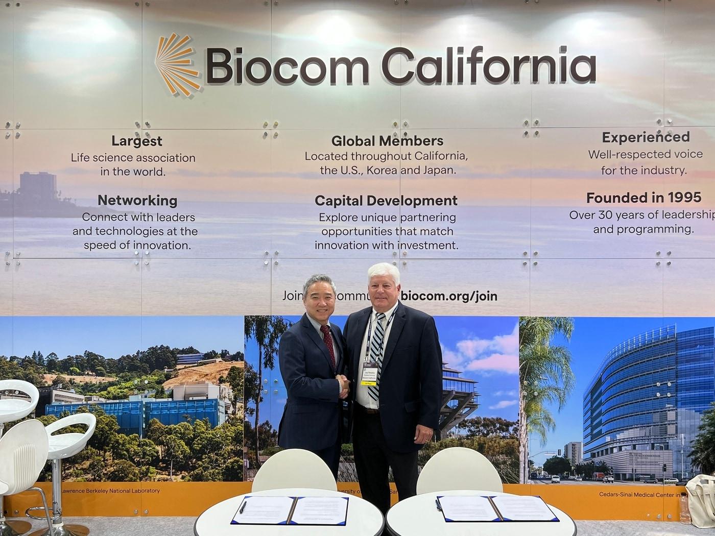 글로벌 바이오 산업 협력 위한 MOU 체결9일 서울 코엑스에서 진행된 한국바이오협회-미국 바이오컴 캘리포니아 업무협약(MOU) 체결식. 한국바이오협회 이승규 부회장(왼쪽)과 바이오컴 캘리포니아 조 패네타 명예회장. (한국바이오협회 제공)관련 키워드한국바이오협회미국 바이오컴 캘리포니아이승규 부회장업무협약코엑스문대현 기자 [동행취재]K-바이오, 둘째 날도 '잭폿'은 없었다…"씨 뿌리고 열매 기다려야"'서진석 등판' 셀트리온, JPM서 '신약' 입지…ADC·비만치료제 등 속도[2026JP모건 콘퍼런스]