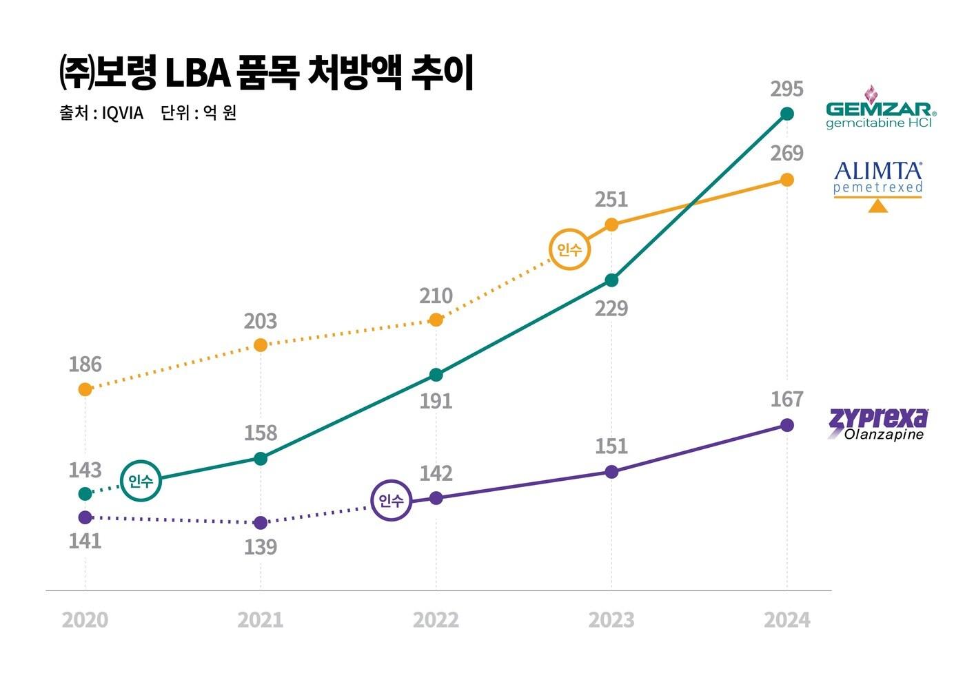 앞서 보령은 LBA 전략을 통해 글로벌 제약사 일라이 릴리로부터 △2020년 항암제 '젬자(성분명 젬시타빈)' △2021년 조현병 치료제 '자이프렉사(성분명 올란자핀)' △2022년 '알림타(성분명 페메트렉시드)' 등 오리지널 품목에 대한 국내 권리를 순차적으로 인수했다.