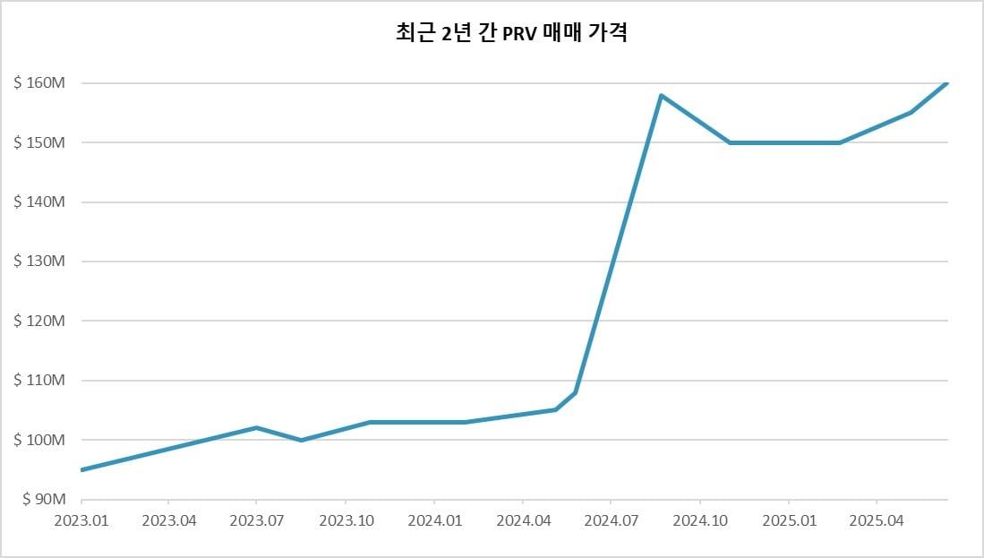 한편 현재 PRV는 희귀소아질환 프로그램 일몰 시점(2026년 9월) 확정 이후 공급 축소에 대한 기대감으로 급등세다. 지난해 하반기 이후 약 70% 상승해 현재 1억 6000만 달러(약 2200억 원) 수준에서 거래 중이다.