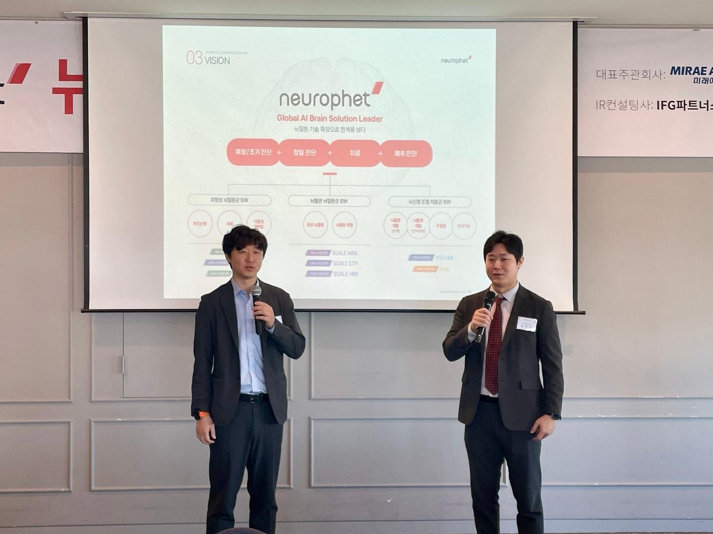15~16일 일반투자자 대상 공모 청약 실시25일 코스닥 입성 예정…미래에셋증권 주관김동현 뉴로핏 공동대표이사(왼쪽부터), 빈준길 뉴로핏 공동대표이사가 기업공개(IPO) 기자간담회에서 질의응답을 받고 있다.(뉴로핏 제공)/뉴스1관련 키워드뉴로핏의료AI코스닥 상장뉴로핏 스케일 펫뉴로핏 아쿠아 AD황진중 기자 알엑스바이오, AI·빅데이터 기반 신약개발 계열사 '이노원' 설립복지부, R&D 예산 1조 652억 편성…625억 규모 1차 신규과제 공고관련 기사K-바이오 부활 신호탄…IPO·대규모 투자 활황'의료 AI 기업' 뉴로핏, 상장 첫날 '따블' 터치[핫종목]"성공하면 의료 AI IPO 지형 달라져"…뉴로핏 기술특례 상장에 쏠린 눈뉴로핏, 코스닥 상장 예심 승인…IPO 본격 착수