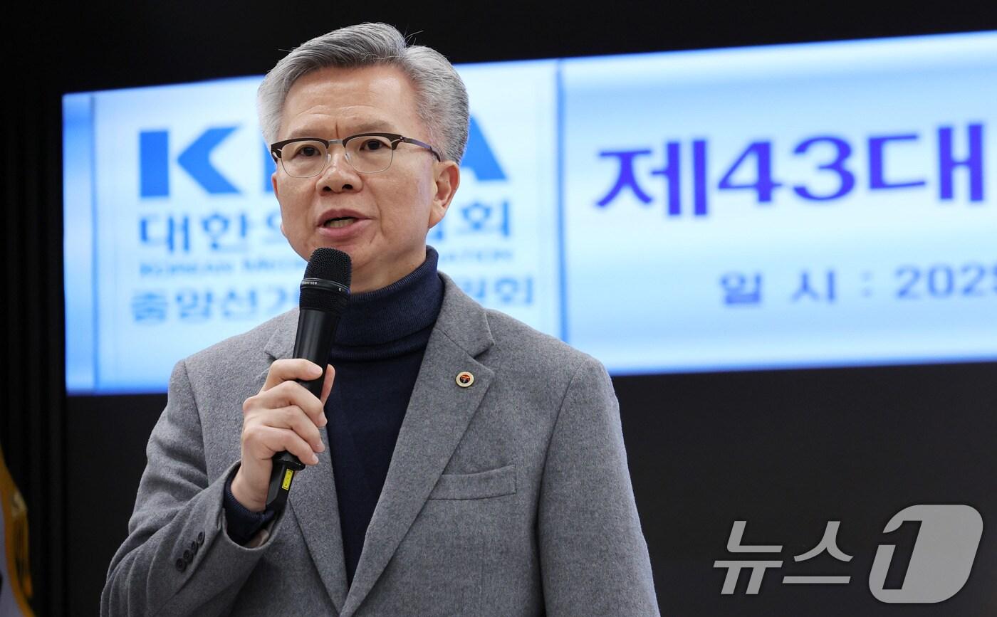 제43대 대한의사협회 회장에 당선된 김택우 후보가 8일 서울 용산구 대한의사협회 회관 대강당에서 고광송 의협 중앙선거관리위원장에게 당선증을 전달받고 있다. 2025.1.8/뉴스1 ⓒ News1 박지혜 기자관련 키워드의대증원김택우대한의사협회尹비상계엄선포강승지 기자 전남 장성서 80대 여성 한랭질환으로 숨져…올 겨울 처음약사회 "건보 특사경, 국민건강 보호와 지속 가능성 위해선 시급"관련 기사의협 "尹 정부 의대 증원 추진 위법" 尹 고발…직권남용 등 혐의의협 "윤석열·조규홍 등 의대증원 책임자 법적 대응 준비 중"의협 "정부, 계엄사태 전철 되풀이 말아야…진정성 있는 협의"의협 "감사 결과로 '의대증원' 문제 입증…책임자 법적 책임 묻겠다"법원 "'전공의 집단행동 지지' 의협회장 면허 3개월 정지 징계 취소"