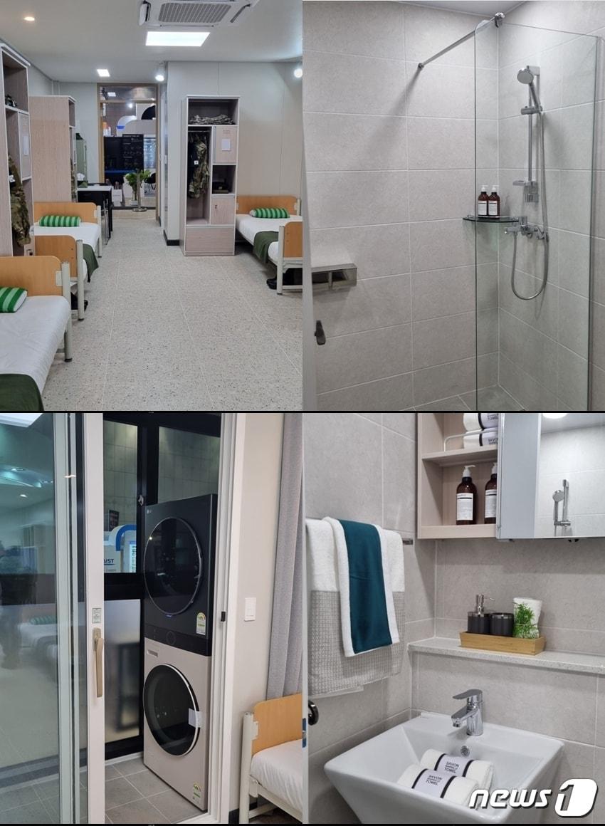 대한민국방위산업전 2022(DX코리아 2022)에 전시된 병영생활관 모습. 4인 생활관으로 각자 침대와 옷장, 인터넷 연결선이 있으며 베란다에 세탁기와 건조기까지 구비 돼 있다. 국방부는 순차적으로 모든 생활관을 이러한 형태의 생활관으로 바꿀 예정이다. (육대전 갈무리) ⓒ 뉴스1 박태훈 선임기자 신동욱, 마지막 해법이라며 한동훈에 '최고위 공개검증' 제안천하람 "이혜훈 도덕성마저 처참, 2016년엔 '동료 의원 낙선 기도' 요청까지"