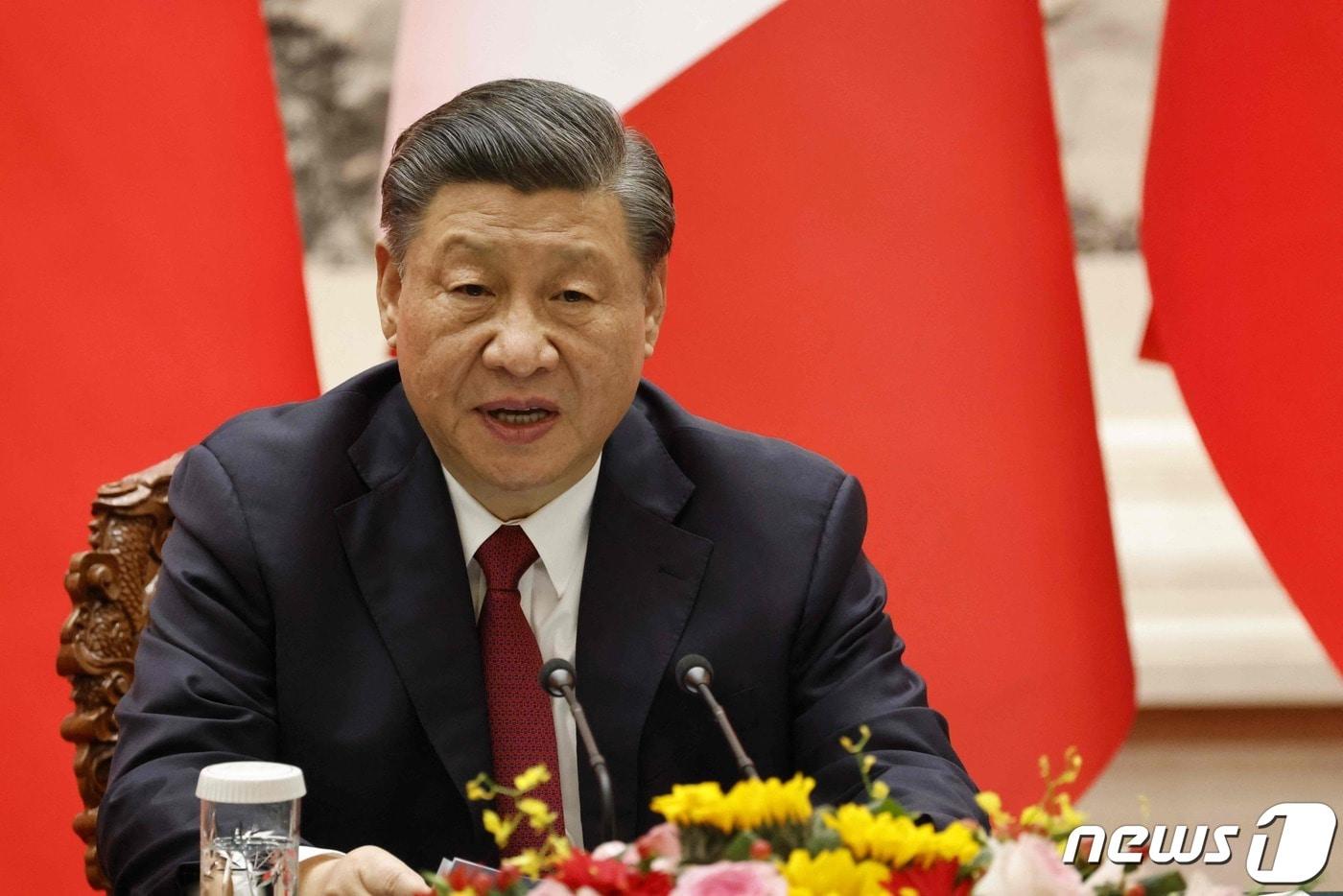 시진핑 중국 국가주석이 6일 (현지시간) 베이징 인민대회당에서 국빈 방문한 에마뉘엘 마크롱 프랑스 대통령과 정상회담을 마친 뒤 기자회견서 “볼로디미르 젤렌스키 우크라이나 대통령과 언제든지 통화할 준비가 돼 있다”고 밝히고 있다. ⓒ AFP=뉴스1 ⓒ News1 우동명 기자