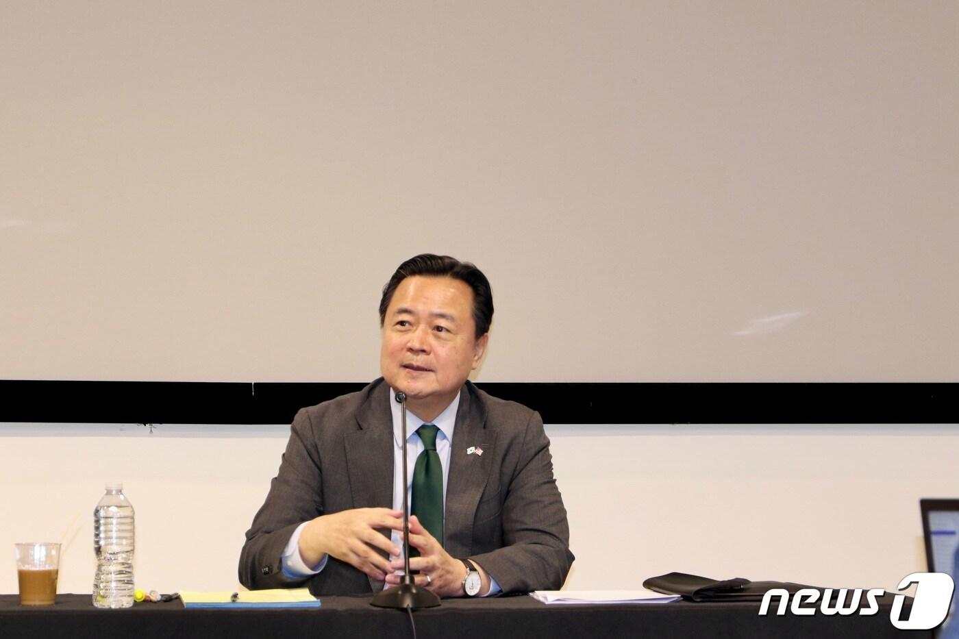 조현동 주미한국대사가 31일(현지시간) 워싱턴DC 한국문화원에서 특파원들과 간담회를 갖고 있다. 사진은 워싱턴특파원단 제공.