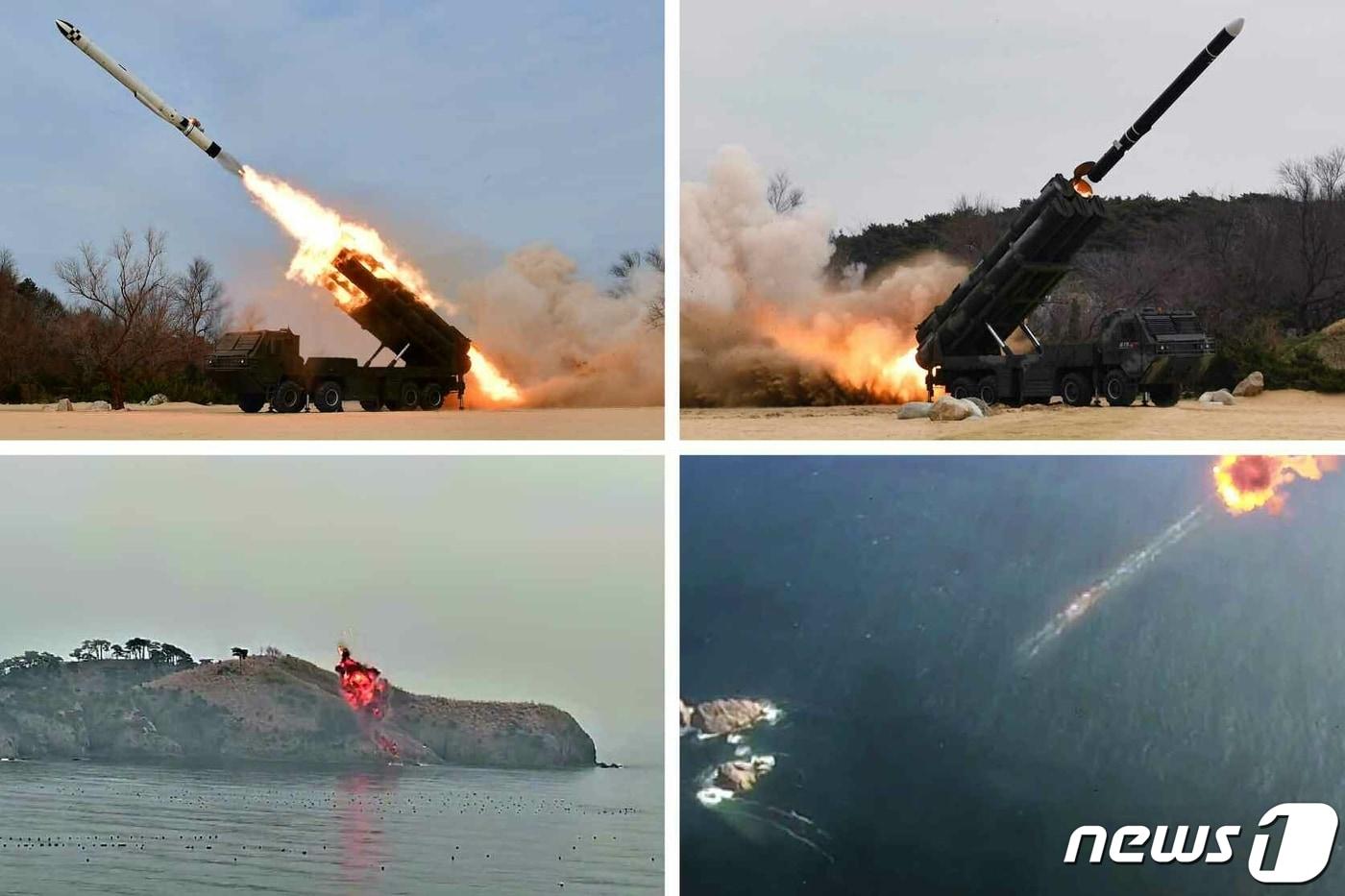 (평양 노동신문=뉴스1) = 북한의 '화살-1·2'형 시험발사 모습. [국내에서만 사용가능. 재배포 금지. DB 금지. For Use Only in the Republic of Korea. Redistribution Prohibited] rodongphoto@news1.kr