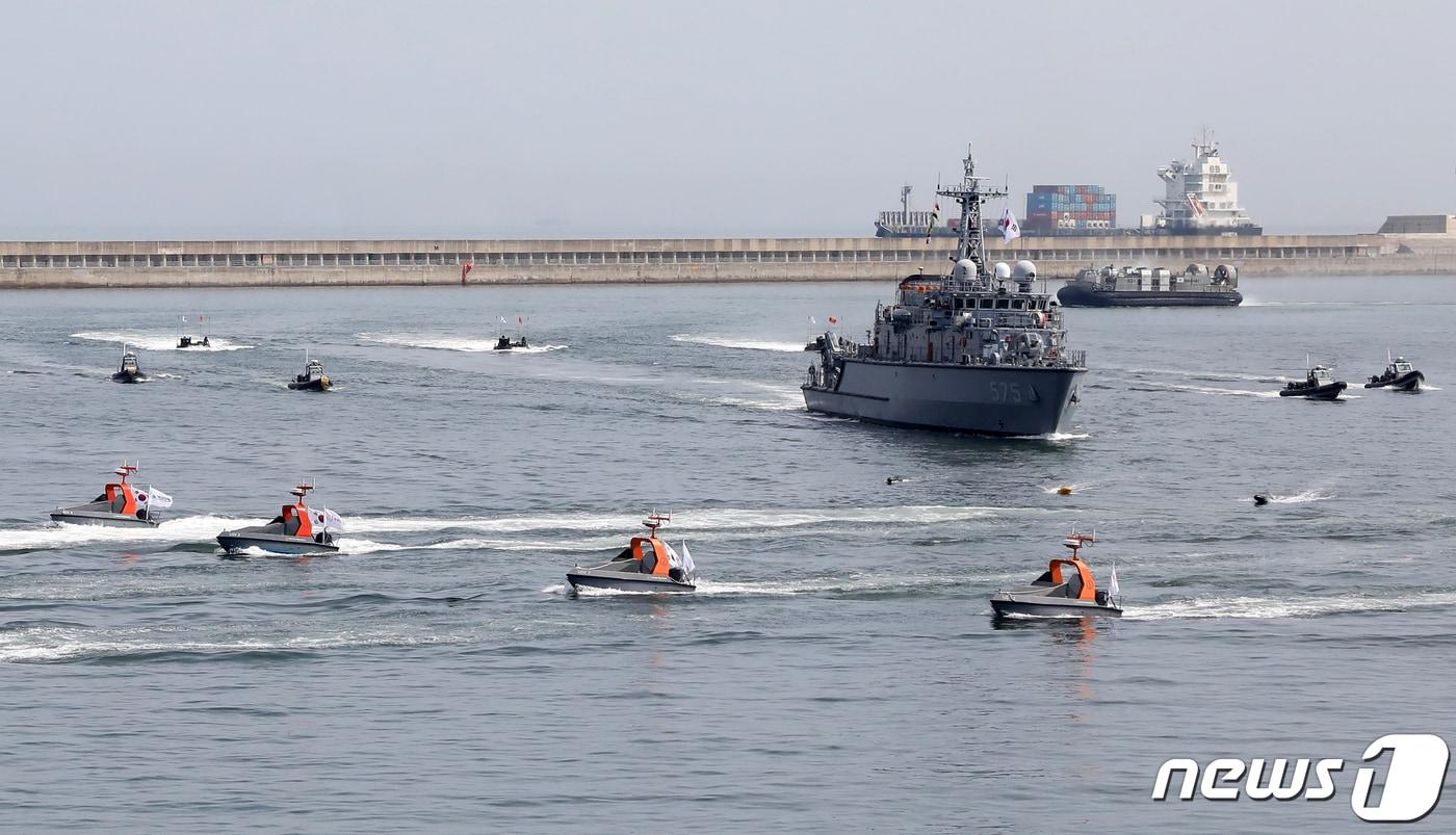 지난해 6월 부산 남구 해군작전사령부 부산작전기지에서 해양 유·무인 복합전투체계 '네이비 씨 고스트'(Navy Sea GHOST)를 적용한 상륙작전 시연을 하는 모습. 2023.6.8/뉴스1 ⓒ News1 윤일지 기자