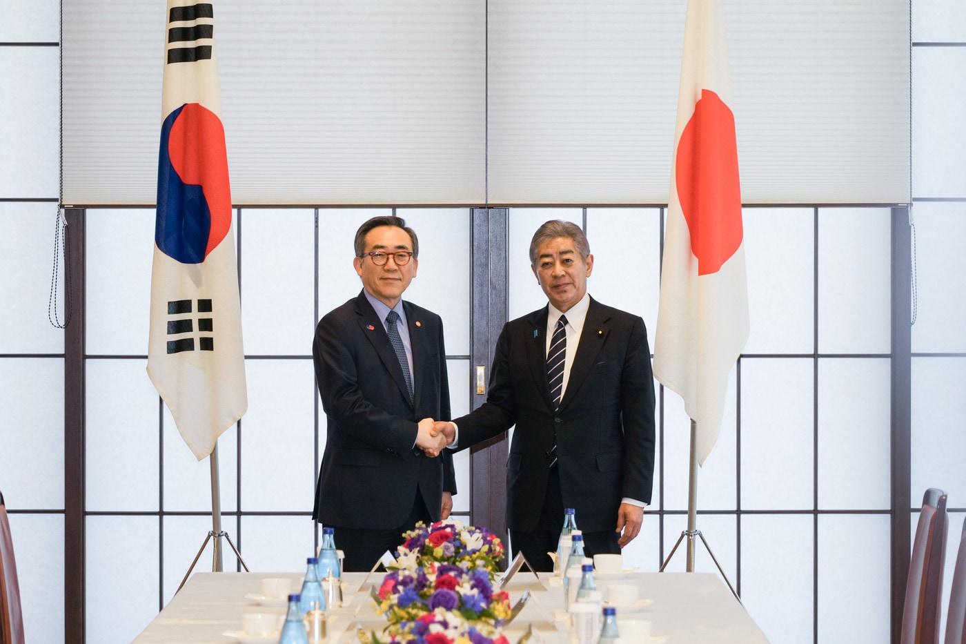 조태열 외교부 장관(왼쪽)과 이야와 다케시 일본 외무상이 22일 일본 도쿄 외무성 이쿠라공관에서 한중일 외교장관 회의를 계기로 열린 한일 외교장관 회담에 앞서 악수하고 있다. (외교부 제공. 재판매 및 DB금지) 2025.3.22/뉴스1 ⓒ News1 김도우 기자