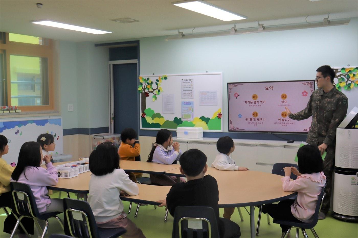 웅비포병대대 고민수 상병이 웅담초등학교 학생들에게 수학을 가르치고 있다.(육군 30기갑여단 제공)길기성 상병이 초등학생들에게 방송댄스를 가르치고 있다.(육군 30기갑여단 제공)관련 키워드육군재능기부용사군인 선생님허고운 기자 주한미군, 평택 '아파치 대대' 운용중단…'전략적 유연성' 연관(종합)공군 T-50 항공기, 훈련 중 비상착륙…조종사 2명은 무사