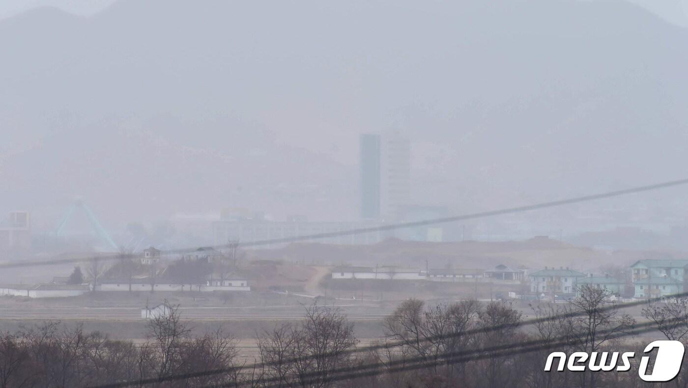 7일 오전 경기도 파주 DMZ내에 위치한 대성동 마을회관 옥상에서 본 북한 기정동 마을 넘어 보이는 안개 낀 개성공단. 2020.1.7/뉴스1 ⓒ News1 사진공동취재단