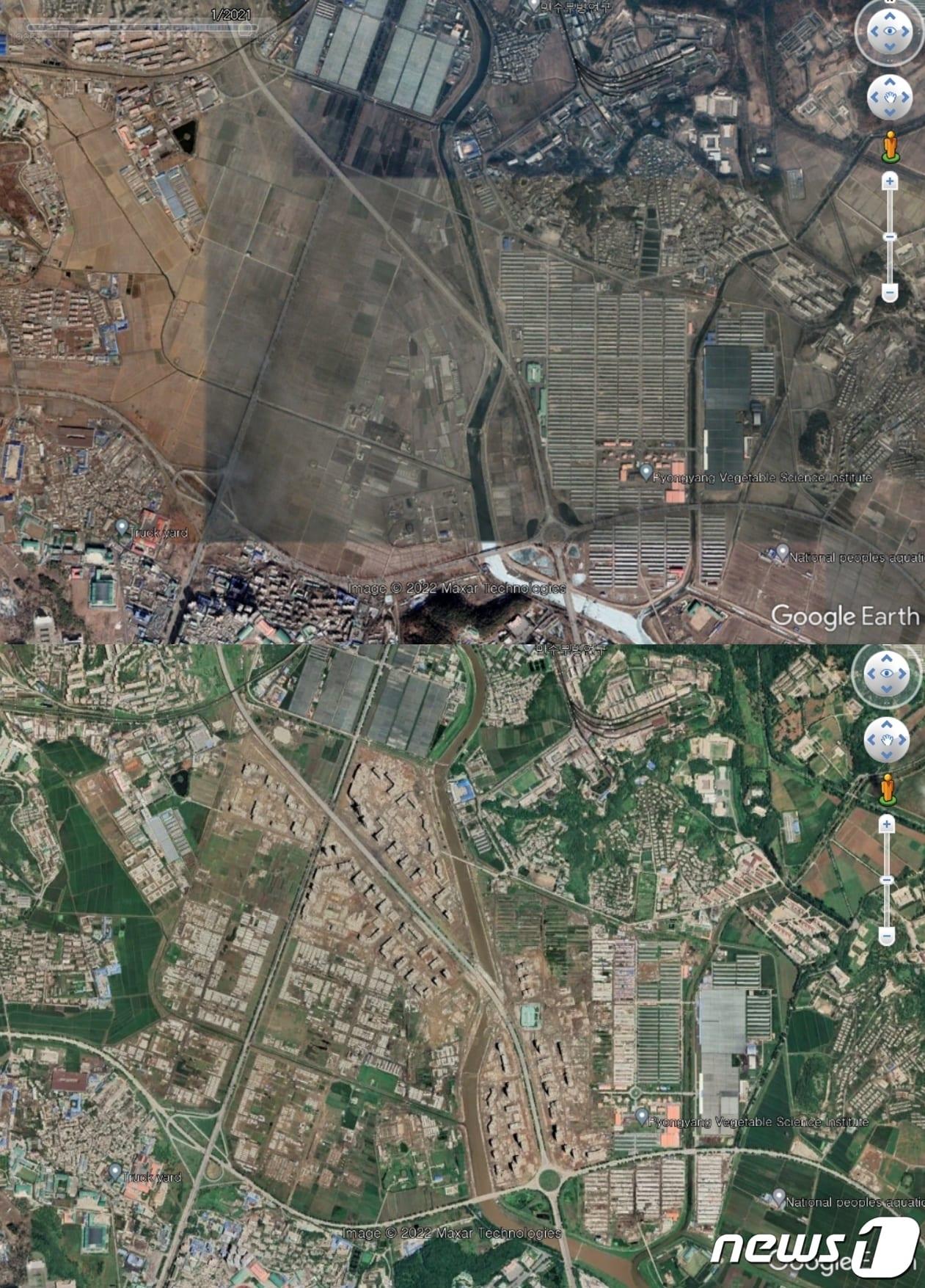 구글어스 위성사진에 포착된 북한 화성지구 건설 현장 모습. (자료=구글어스)ⓒ News1