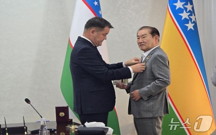 국가 개혁 및 교육 기여 등 공로 인정 받아라종억 통일문화연구원 이사장이 지난달 26일 우즈베키스탄 카라칼팍스탄 자치공화국 최고회의로부터 아르다클리니 누르니 훈장을 수훈했다고 통일문화연구원이 10일 밝혔다.(통일문화연구원 제공)관련 키워드통일문화연구원우즈베키스탄김예슬 기자 北, 내년 국방계획 핵심은 '핵+재래식 병진'…9차 당 대회 때 공표노동신문 '특수자료→일반자료' 전환…주요 도서관서 누구나 볼 수 있다관련 기사라종억 통일문화연 이사장, 우즈베크 기묘국제대 '명예박사'HY교육, 카라칼팍스탄 공화국 정부와 교육 협력 정식 계약라종억 통일문화연구원 이사장, '교류 공로' 우즈벡 훈장 받아MTN·통문연, 고려인·다문화인 교육 및 정착 지원 나선다