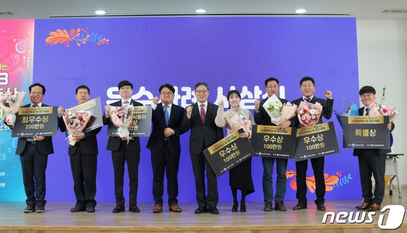 AI기반 양돈 분만사 정밀관리시스템 '엠트리센'에 농식품장관상제1회 스마트축산 AI 경진대회 시상식 모습(농림축산식품부 제공)심언기 기자 [속보] 靑, 尹 체포방해 1심 징역 5년에 "법과 원칙따라 진행될 것"[속보] 李대통령, 21일 신년 기자회견…영빈관서 90분간 진행