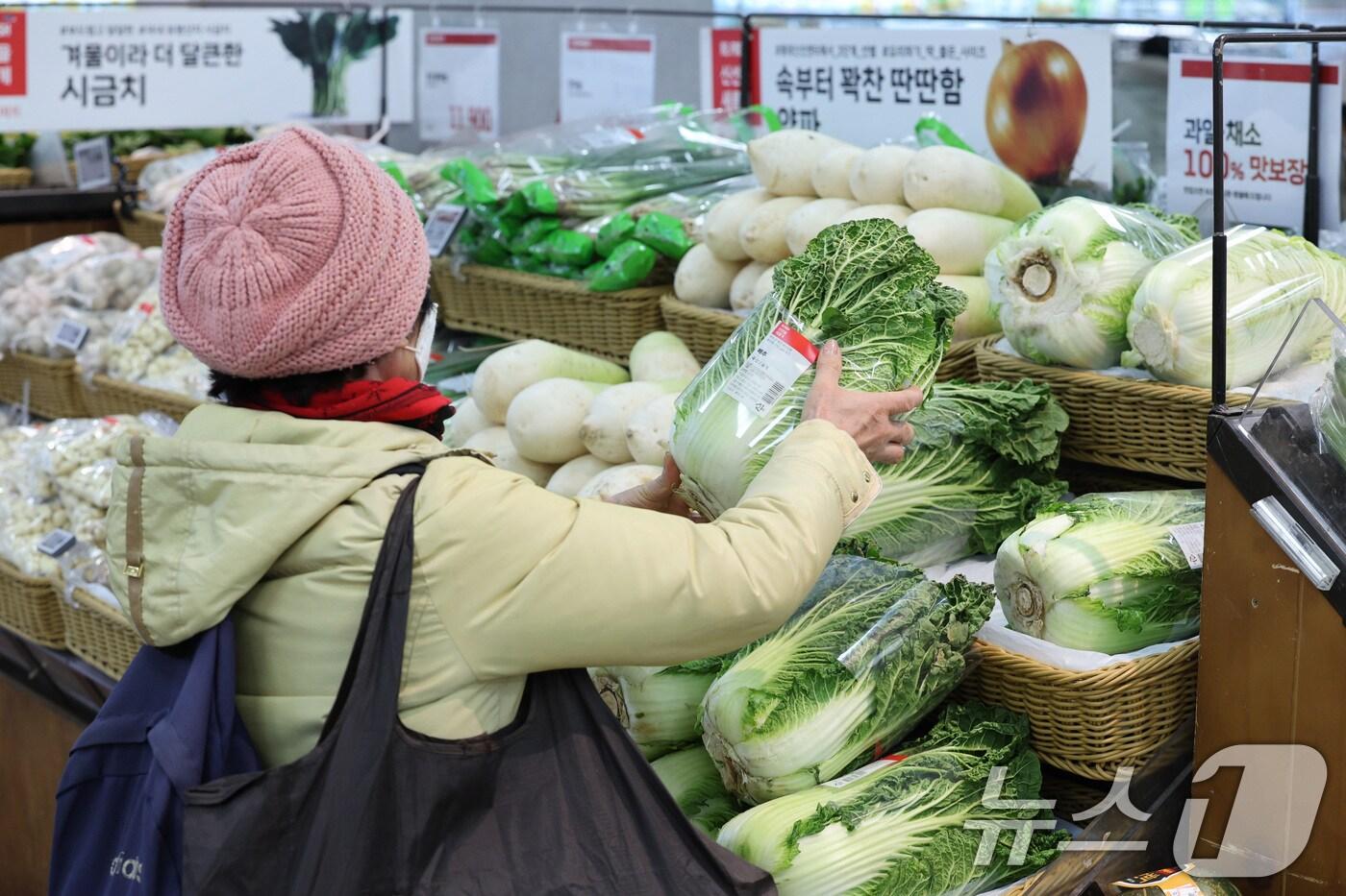 서울의 한 대형마트에서 고객들이 채소를 고르는 모습. 2025.1.14/뉴스1 ⓒ News1 신웅수 기자