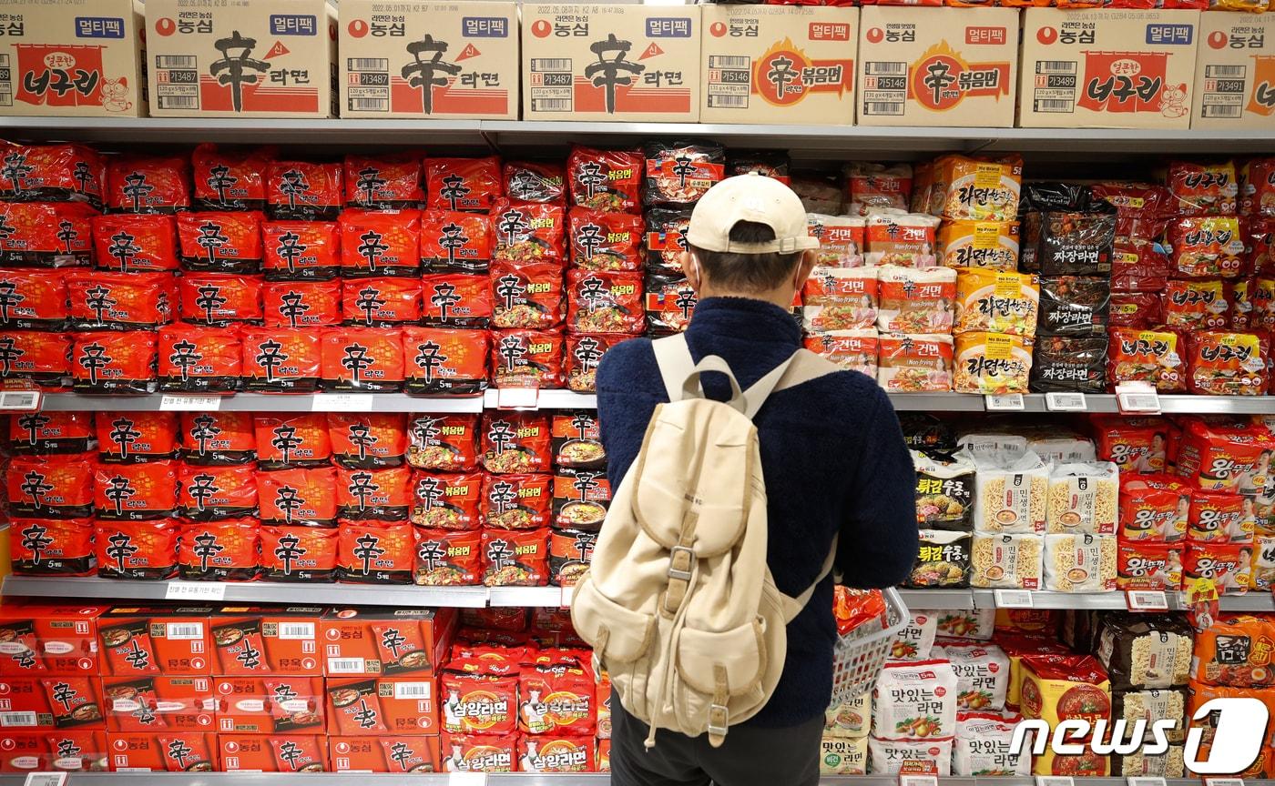 3분기 식료품 물가 5.0% 상승…OECD 중에선 5위7분기째 상승…냉면·컵라면 등 서민 식비 치솟아라면들이 진열된 서울 시내의 한 대형마트에서 장을 보고 있는 시민. 2021.12.5/뉴스1DB ⓒ News1 이승배 기자김혜지 기자 美 따라 힘 받는 '금리 인하'…10월 금통위 변수는 '오르는 집값'상반기 카드 이용액 일평균 3.5조 원…42%가 비대면 결제