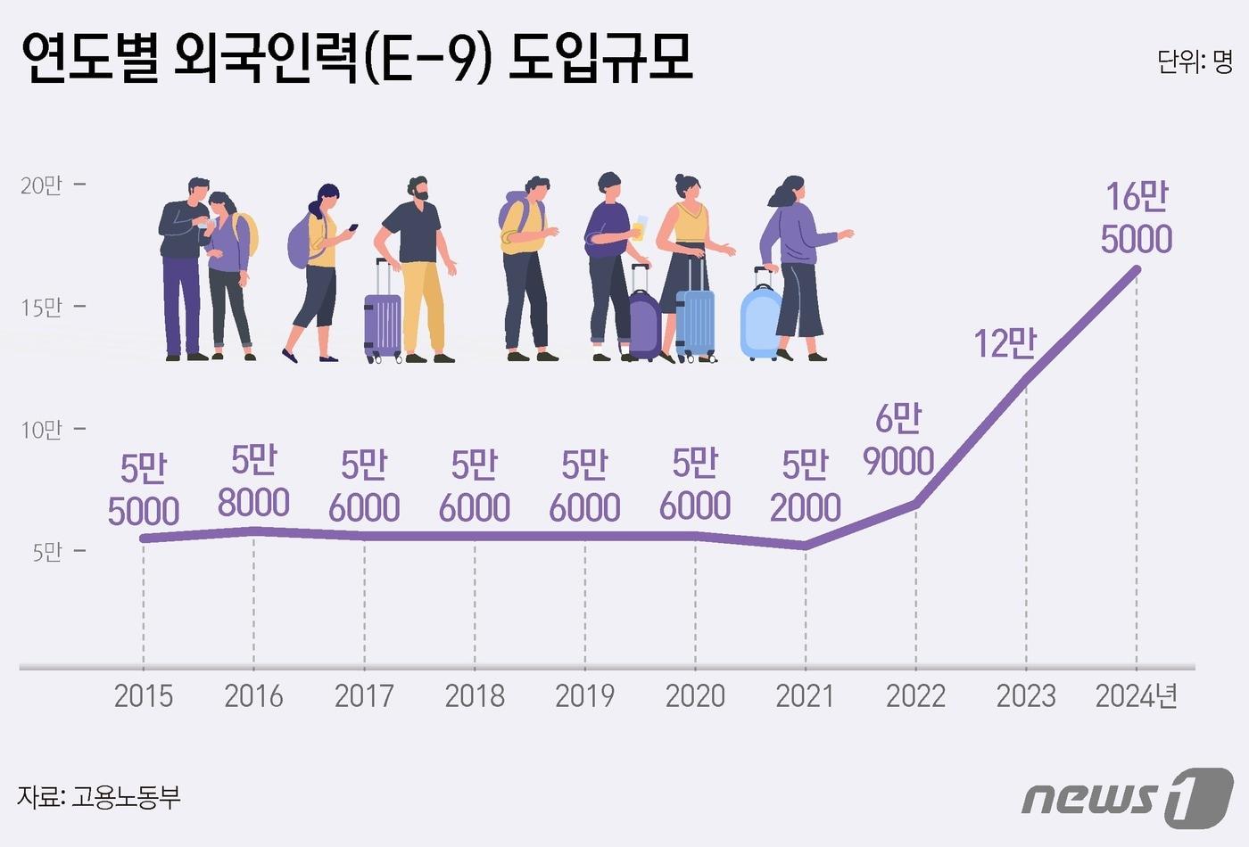 음식점업, 100개 지역 한식점업 주방보조 업무에 시범도입임업·광업에서도 활용 가능…"내국인 기피 빈일자리 해소 기여"ⓒ News1 양혜림 디자이너ⓒ News1 김지영 디자이너관련 키워드외국인력고용쿼터이정현 기자 트럼프發 반도체 관세 2라운드 예고…韓 7천억달러 수출 경고등미 반도체 관세 조치 확대 우려…전문가들 "韓 영향 크지 않을 것"관련 기사외국인력 고용허가 연 5회로 확대…내년 1만5784명 배정변광용 거제시장 "동남권 중심도시 거제…조선업 구조적 문제 풀어야"MASGA로 일감 늘텐데…'인력난 해소' 조선업 쿼터는 올해로 종료외국인 붐비는 조선업 도시…돌아온 '호황기'에도 웃지 못하는 동구노동부, 조선업 인력수급 TF 구성…외국인쿼터 통합 검토