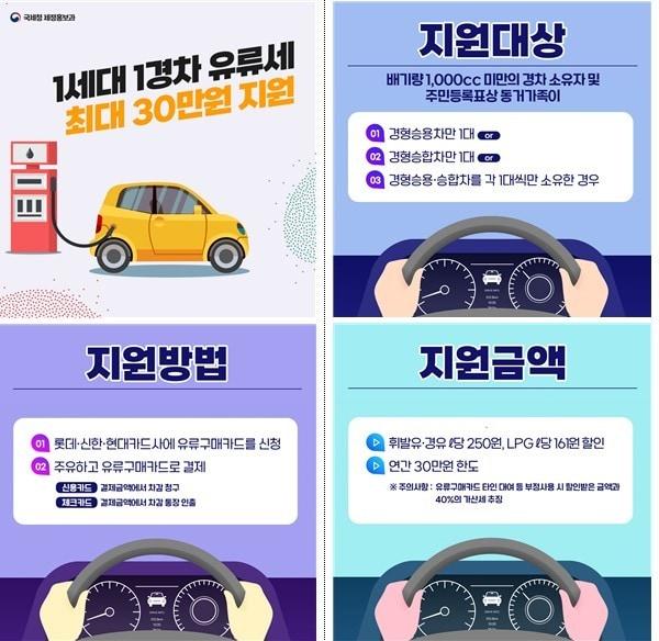 휘발유·경유 리터당 250원, LPG는 161원 지원…배기량 1천cc 미만환급액 차감 후 카드대금 청구…다른 차량에 사용 시 40% 가산세(국세청 제공) ⓒ 뉴스1관련 키워드국세청유류세경차권혁준 기자 스노보드 최가온, 올림픽 앞둔 마지막 월드컵 예선 1위프로야구 울산, 변상권·김도규 등 26명 선발…日 외인 2명도 포함관련 기사[클릭, 세무상식]주유비 아끼는 경차 유류세 환급제도를 아시나요?