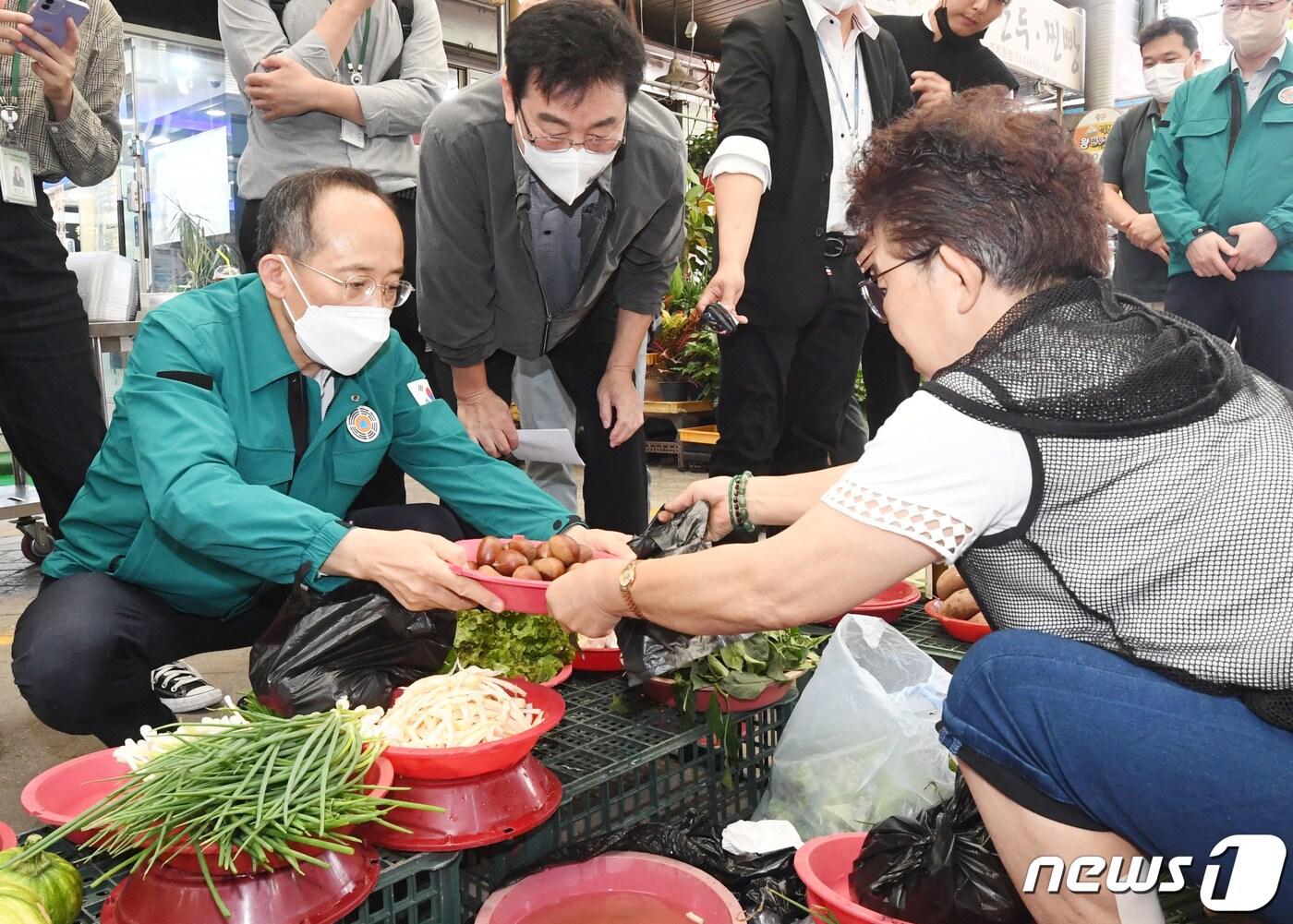 '힌남노'에 농산물 작황 타격, 채소값 1년새 27.9%↑내달 전기·가스료도 인상…추경호 "물가·민생 최우선"추경호 경제부총리 겸 기획재정부 장관이 추석연휴를 하루 앞둔 지난 8일 추석민생 현장방문 일환으로 세종 조치원읍 세종전통시장을 방문, 물품을 구입하고 있다. (기획재정부 제공) 2022.9.8/뉴스1제11호 태풍 '힌남노(HINNAMNOR)'가 지나간 6일 오전 남 진도군 고군면 향동리의 한 농가에 벼가 도복 피해로 쓰러져 있다. (전남도 제공) 2022.9.6/뉴스1관련 키워드힌남노고물가고금리이철 기자 국세청, 매출감소 소상공인 부가세 2개월 연장…영세업자 세무조사 유예한·캄보디아 국세청장 회의 개최…스캠·역외탈세 협력 강화 논의
