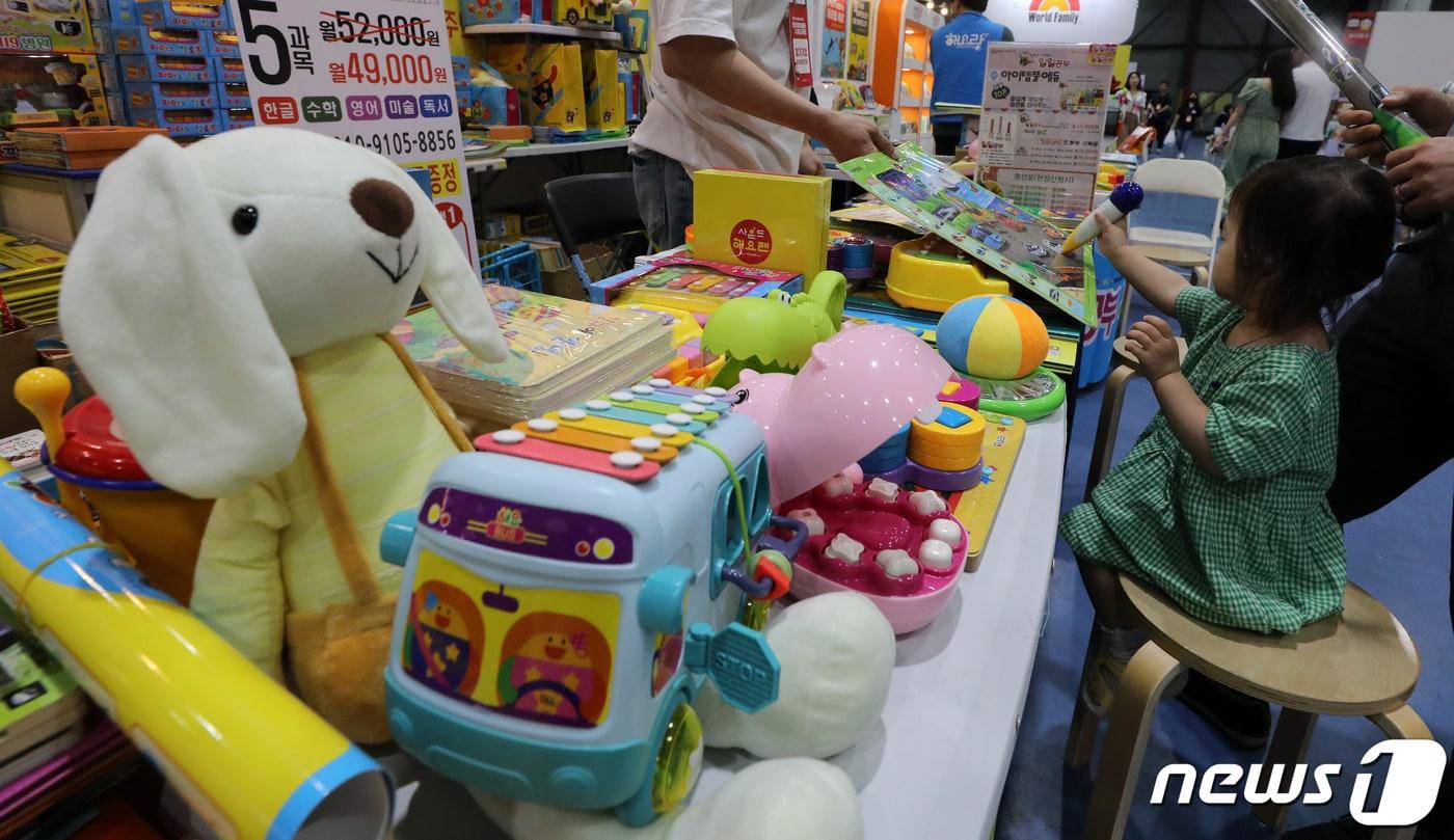 29일 서울 강남구 세텍(SETEC)에서 열린 육아박람회 ‘제64회 코베 베이비페어&유아교육전'에서 관람객들이 다양한 육아 교육용품을 살펴보고 있다. 2023.6.29/뉴스1 ⓒ News1 이동해 기자