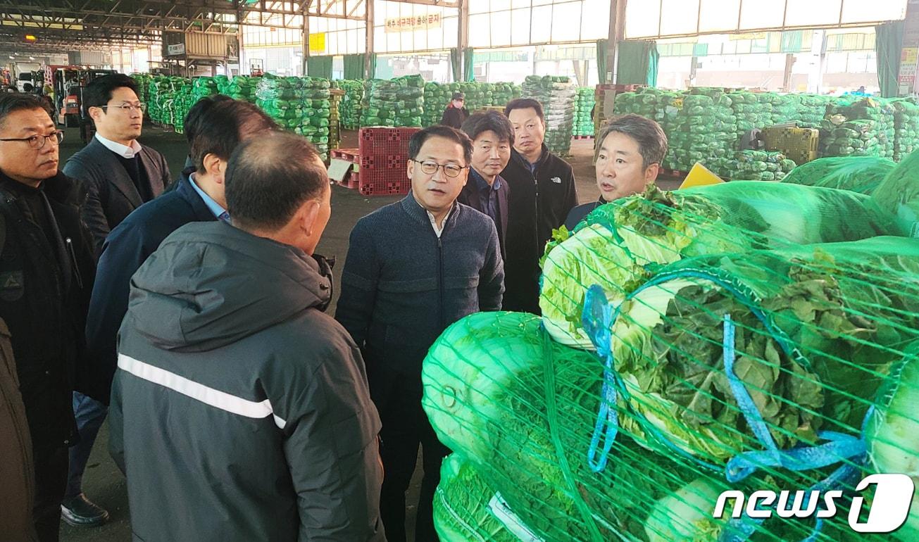 "배추·무 소매가격, 전년보다 낮은 수준"홍두선 기획재정부 차관보가 11월 23일 오전 서울 가락동 농수산물종합도매시장에서 주요 먹거리 가격 동향을 점검하고 있다(기획재정부 제공). 2023.11.23/뉴스1관련 키워드김장비용한국농수산식품유통공사이철 기자 [속보] 올해 연간 물가상승률 2.1%…12월 물가는 2.3%↑"국정원 지시" 쿠팡 주장에 국정원 "지시·명령 없었다"(종합2보)관련 기사올해 김장비용 20만1000원…전년 대비 5.6% 낮아'김장 대란' 없을 듯…배추·고춧가루 공급 원활, 내달초 수급대책 발표