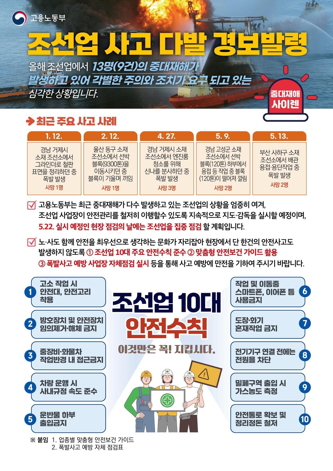 제10차 현장점검의 날…"현장 위험요소 개선 및 핵심 안전 수칙 준수해야" 관련 키워드현장점검의 날조선업고용노동부나혜윤 기자 정부·화학업계, 2026년 구조개편 본격 추진…"산업 반전 원년 만들 것"중부발전, 오만 태양광·BESS 금융종결…중동 공략 본격화
