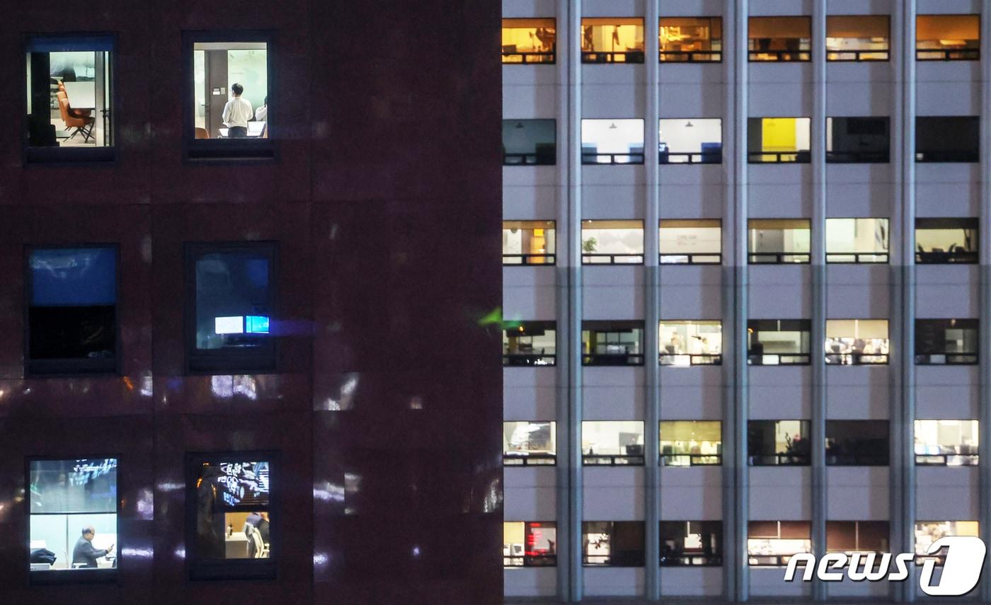 저녁 퇴근길 무렵 기업들이 입주한 서울 시내 사무실에 불이 밝혀져 있다. 2023.11.13/뉴스1 ⓒ News1 민경석 기자관련 키워드고용노동부일육아일생활우수기업세제혜택경제단체나혜윤 기자 정부·화학업계, 2026년 구조개편 본격 추진…"산업 반전 원년 만들 것"중부발전, 오만 태양광·BESS 금융종결…중동 공략 본격화관련 기사육아휴직 셋 중 한 명은 아빠…4만명 넘어 '역대 최고'"출산·육아 정부지원금 총정리"…사업주·인사담당자 가이드북 발간2025 '대한민국 일·생활 균형 우수기업' 모집…6월 5일까지"출퇴근 '유연'하니 매출 30%↑"…대기업도 어려운 워라밸 中企가 해냈다23일부터 맞벌이 육아휴직 '최대 3년'…유산휴가 2배로 확대