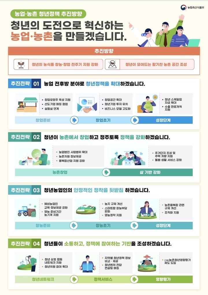 농업·농촌 청년정책 추진방향 발표…보금자리단지 17개 조성보육·문화·복지시설도 1030개소로 확대…창업 저해 규제 혁파 관련 키워드농업농촌기업창업청년농정주여건임용우 기자 올해부터 주말부부도 월세 공제…청년미래적금 40세까지 가입 가능정부 "반도체 호조에 경기 회복 흐름 지속…美관세 불확실성 상존"(종합)관련 기사[인사] 경기도'평안북도 애도간석지' 완공 선전…농촌 다수확 운동 격려 [데일리 북한][인사] 충남도보령시, RE100 비전 선포식…"햇빛·바람 연금 시대 열 것"김영록 지사 "행정통합 큰 효과는 기업 유치로 일자리 창출"