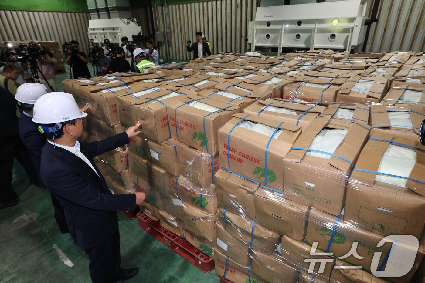 중국산 배추 1100톤 수입…준고랭지 배추도 본격 출하10월 공급 줄면 가을배추 출하 당겨…"11월엔 더 싸질 것" 한국농수산식품유통공사 이천비축기지에서 관계자들이 중국산 신선배추의 상태를 점검하고 있다. (공동취재) 2024.9.30/뉴스1 ⓒ News1 김영운 기자관련 키워드배추중국산수입가을김장임용우 기자 올해부터 주말부부도 월세 공제…청년미래적금 40세까지 가입 가능정부 "반도체 호조에 경기 회복 흐름 지속…美관세 불확실성 상존"(종합)관련 기사英매체 "벼랑 끝 한국 김치" 조명…안방서 반값 중국산에 밀려중국산 '마늘쫑·시금치'서 농약 초과 검출…식약처, 회수 조치"가족 모두 '꽁초탕' 먹었다"…냉동해물모듬서 나온 담배, 원산지 중국배춧값 폭등에 '밭떼기' 계약 파기한 농민, 위약금은 얼마?수입산 고기·중국산 김치 '국내산 둔갑'…인천 특사경 10곳 적발