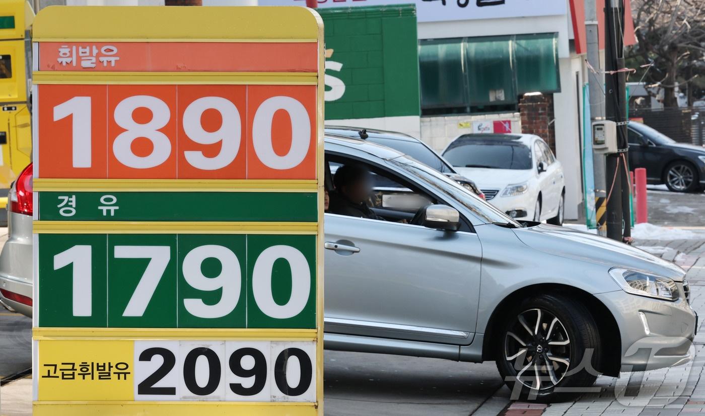 2일 서울시내 한 주유소에서 휘발유를 리터당 1890원에 판매하고 있다. 국내 주유소 휘발유와 경유의 주간 평균 가격이 16주 연속 동반 상승하고 있다. 이날 한국석유공사 유가정보시스템 오피넷에 따르면 이날 서울 전국 주유소 휘발유 평균 판매가는 리터당 1733.18원, 서울은 1799.98원을 기록하고 있다. 2025.2.2/뉴스1 ⓒ News1 박세연 기자