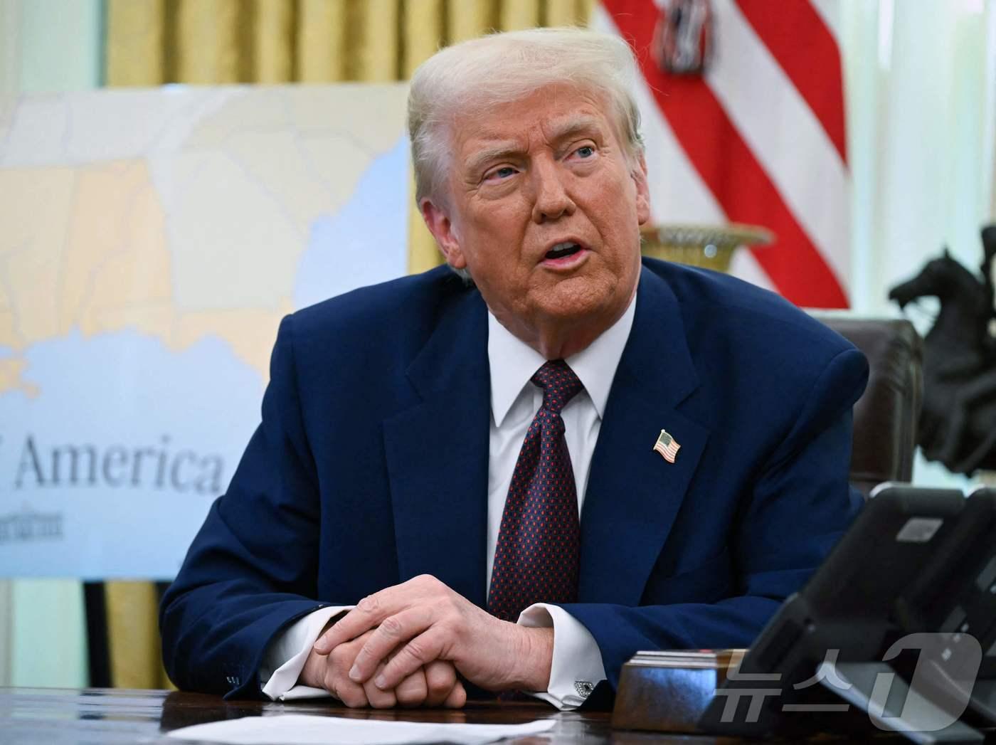 도널드 트럼프 미국 대통령이 13일(현지시간) 워싱턴 백악관에서 상호관세에 관한 행정명령에 서명을 한 뒤 “시진핑 중국 국가 주석 및 푸틴 대통령과 한 번에 3자 회담을 하는 것도 그럴 수 있다”고 밝히고 있다. 2025.02.14 ⓒ AFP=뉴스1 ⓒ News1 우동명 기자