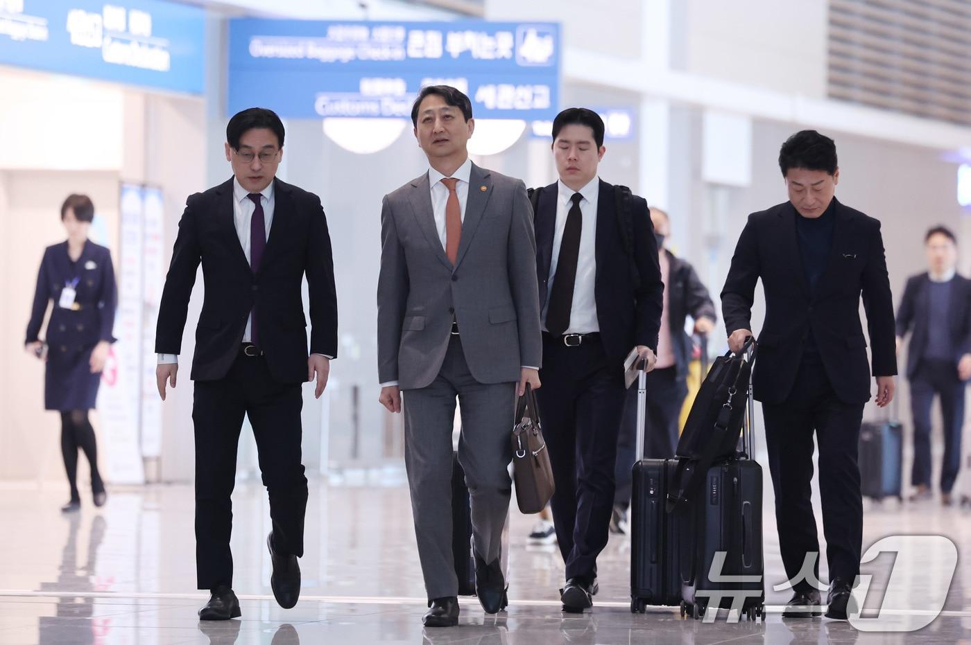 안덕근 산업통상자원부 장관이 20일 인천국제공항 2터미널을 통해 미국 워싱턴으로 출국하고 있다. 안 장관은 미국 워싱턴 D.C.를 방문해 미국 상무부, 에너지부 장관 등을 만나 미국의 민감국가 지정 문제와 통상 정책 등에 대해 논의할 예정이다. 2025.3.20/뉴스1 ⓒ News1 박지혜 기자관련 키워드산업통상자원부안덕근민감국가김승준 기자 통상본부장 "美 반도체 관세, 단기 영향 제한적…美에 쿠팡 문제 설득"노동부, 쿠팡 본사·계열사 근로감독 착수…불법파견 의혹 조사관련 기사구윤철·여한구, 25일 미국과 '2+2 관세 담판'…산업·외교장관도 함께(종합)李정부, 경제·통상 투톱 출격…D-12 한미 관세협상 '총력전''줄라이 패키지' 합의해도 끝 아냐…국회 비준 등 시간 '촉박'안덕근-그리어 16일 관세 회동…'줄라이 패키지' 중간점검 나선다(종합)한미,'줄라이 패키지' 협상틀 변경…작업반 없이 분야별 순차 협의로