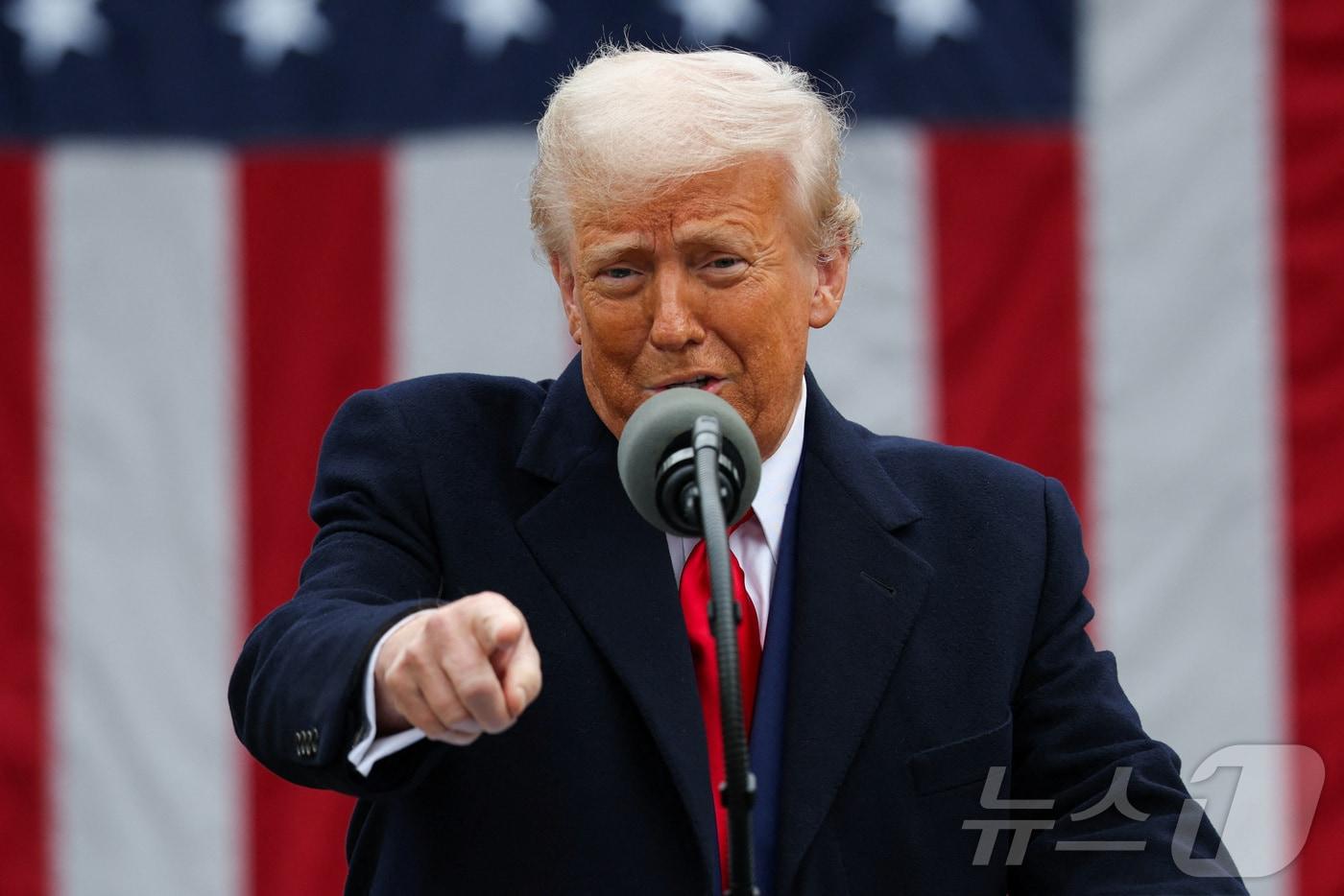 도널드 트럼프 미국 대통령이 2일(현지시간) 워싱턴 백악관 로즈가든에서 열린 ‘미국을 다시 부유하게’ 행사서 상호관세를 발표하는 행정명령 서명식 중 "한국, 일본과 매우 많은 다른 나라들이 부과하는 모든 비금전적 무역 장벽이 어쩌면 최악"이라고 말하고 있다. 2025.04.03 ⓒ 로이터=뉴스1 ⓒ News1 우동명 기자