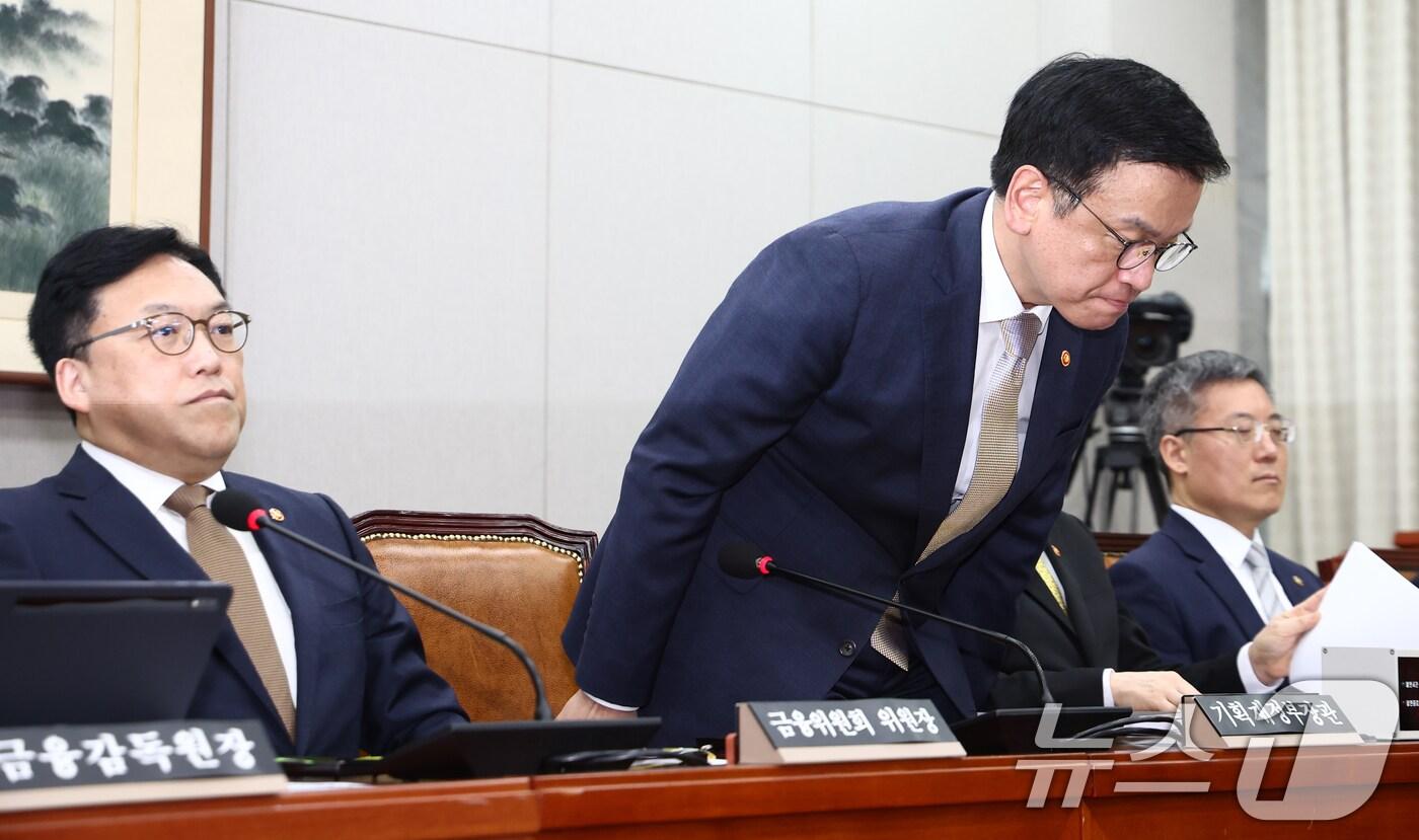 전임자 한 총리가 '여야 합의' 언급…"후임으로 존중"최상목 경제부총리 겸 기획재정부 장관이 16일 오전 서울 여의도 국회에서 열린 법제사법위원회 최 부총리 탄핵소추사건 조사 청문회에 출석해 인사하고 있다. 왼쪽부터 김병환 금융위원장, 최 부총리, 김석우 법무부 차관. 2025.4.16/뉴스1 ⓒ News1 김민지 기자관련 키워드최상목이철 기자 이창용 "환율·집값 리스크에 금리 동결"…인상론엔 선 그어(종합)[속보]이창용 "한미 MOU 투자액 조정 가능…외환 불안하면 200억불 못나간다"정윤미 기자 박영재 법원행정처장 "국민 목소리 겸허히 받아들여 사법 불신 개선"자문위 일부 사퇴에 여권 내홍까지…檢개혁추진단 '빨간불'관련 기사[일지] 12·3 계엄 선포부터 尹 '체포 방해' 1심 징역 5년 선고까지[일지] 12·3 비상계엄 선포부터 내란특검 尹 사형 구형까지'세 번째 올림픽' 김민선 "상화 언니 이어 두 번째 메달리스트 되고파"[인사] KB금융지주 및 KB국민은행밀라노 동계 올림픽 D-30…"금메달 3개 이상, 4년 전보다 한 개 더"