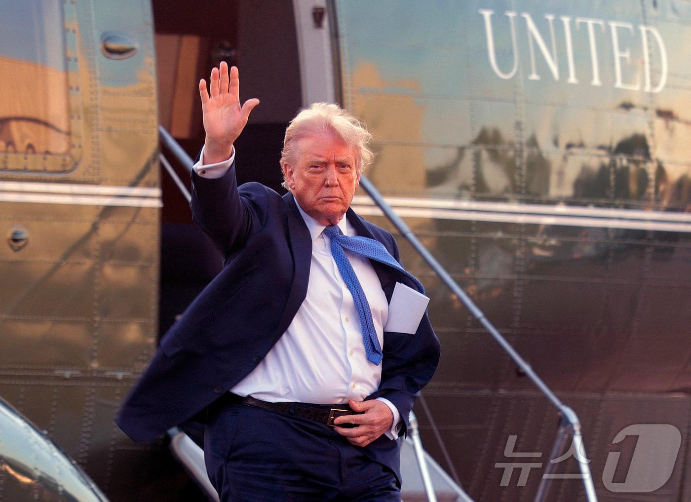 도널드 트럼프 미국 대통령이 24일(현지시간) 버지니아에서 열린 MAGA 디너에 참석하기 위해 공항에 도착하고 있다. ⓒ AFP=뉴스1