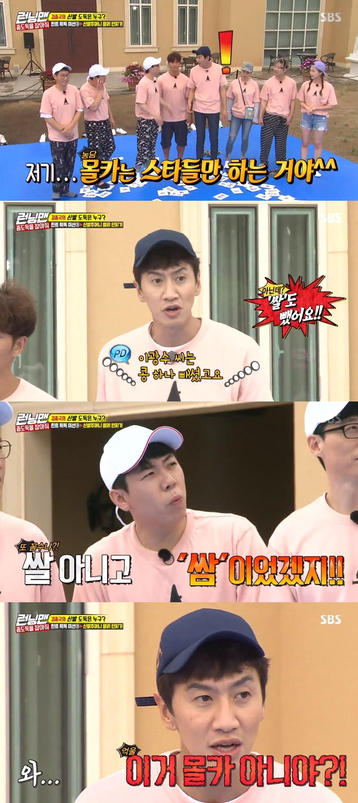 SBS '런닝맨' 캡처ⓒ News1주요 기사강은비, 임신 21주차에 유산 '오열'…"다시 엄마 아들로 와 줘"포미닛 출신 허가윤, 학폭 피해 고백…"머리끄덩이 잡힌채로 계속 맞아"신정환, 탁재훈에 컨츄리꼬꼬 콘서트 러브콜…"나 2 : 형 8"박나래 前매니저 "합의 안지킬시 10억 요구…전 남친 경영학과? 자퇴"'새신랑' 김종민 "사기 여러번 당했다"…분노에 비속어까지
