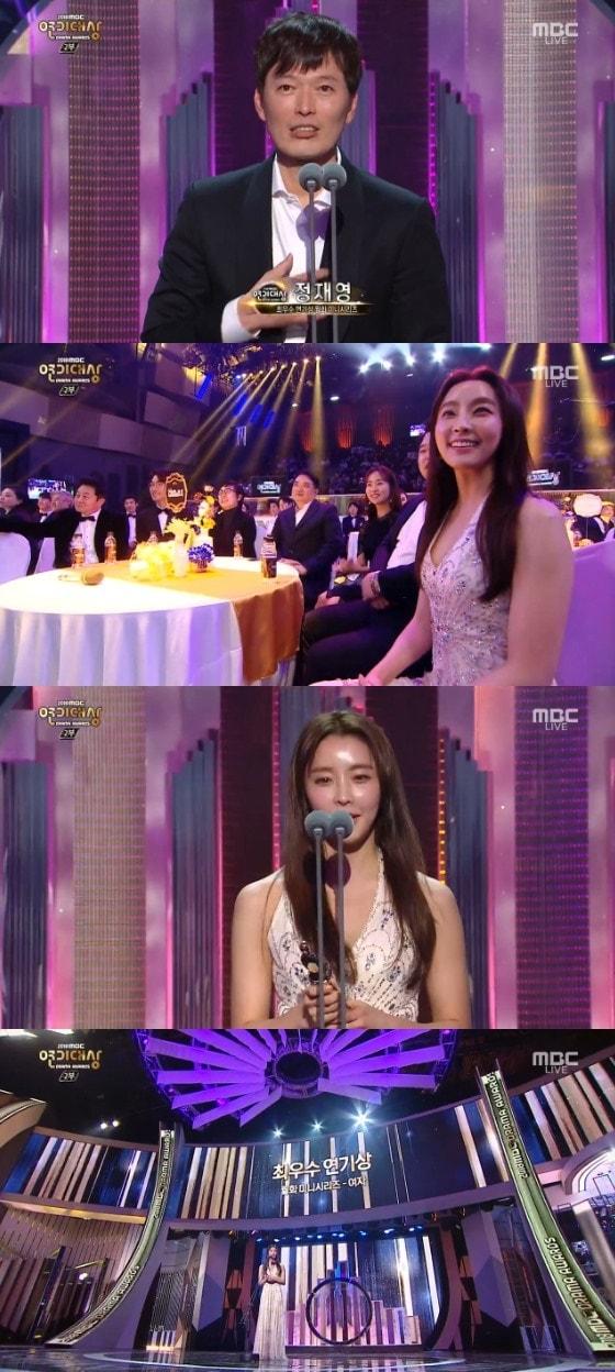 '2018 MBC 연기대상' 방송 화면 캡처 ⓒ News1김민지 기자 위트 넘치는 키키, 신보 콘셉트 포토 공개…신곡 '404' 컴백'은애하는' 영혼 바뀐 남지현·문상민, 홍민기와 삼자대면 '긴장'주요 기사'개코와 이혼' 김수미 "다시 태어나면 스타와 결혼 NO"슈 "남편 임효성과 싸워 두 달째 연락 안 돼…화해하고 싶어"지상렬, '16세 연하' 신보람과 열애 인정 후 최초 동반 등장논란 여파? '도라이버' 등장 조세호, 수척해진 모습 눈길'비혼모' 사유리, 외국인 '남편들' 깜짝 공개…"AI로"