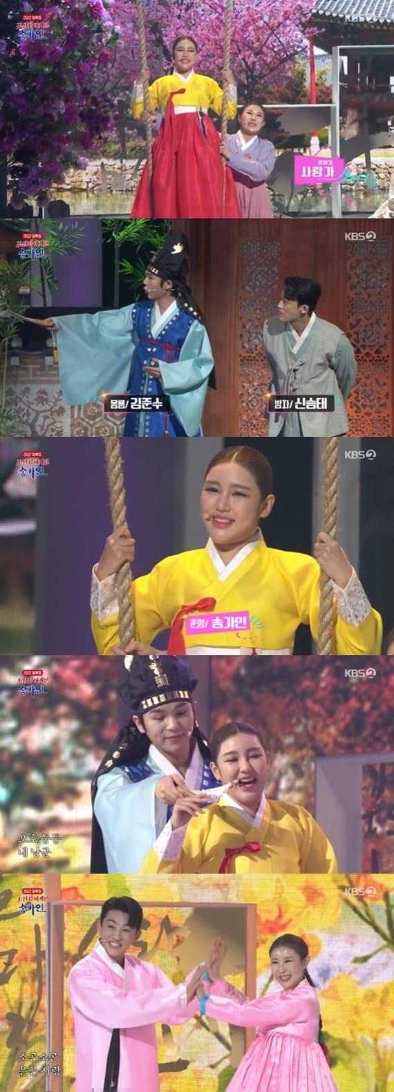 '조선팝 어게인 송가인' 1일 방송KBS 2TV '조선팝 어게인 송가인' ⓒ 뉴스1박하나 기자 유재석 "신동엽은 켄타우로스…난 장돌뱅이" [RE:TV]'흑백요리사2' 최강록 "조림 잘하는 척했다"…재도전 끝 우승 [RE:TV]주요 기사조정석♥︎거미, 14일 둘째 득녀…"산모와 아이 모두 건강"류시원 19세 연하 아내 공개…연예인급 미모 대치동 일타강사'신세계家' 애니, 美 명문 컬럼비아대 복학…"학업·음악 작업 병행"정우성 '메이드인코리아' 연기 칭찬글 바이럴 의혹에 소속사 반응은63세 윤영미, 속옷 없이 등 훤히 트인 과감 패션…"서비스"